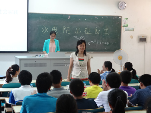 7月11号,皇冠赌场 在致用120举办了2013暑期社会实践出征仪式。校团委吴红书记、院党委戴玉珍副书记、院团委赵志涵书记、11级辅导员刘金凤老师和12级辅导员倪扬老师出席此次出征仪式。会议由水电院团委第一副书记国洪梅老师主持。