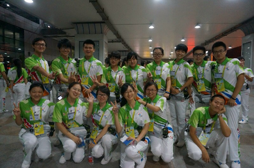 此外12级的谢玮同学一直甘心在编外做一些事,对整个亚青会付出很多,被称为“最美编外志愿者”。