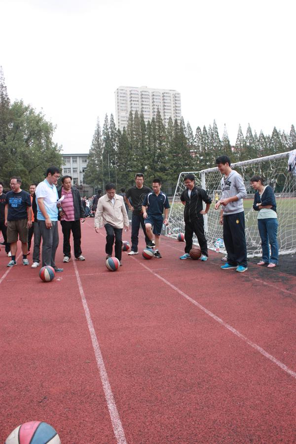 学院的趣味运动会比赛是从教工代表的广播操表演开始的,他们的动作整齐标准,给人美的享受。跳绳是年轻人和女同胞们的强项,学院两办的同事们奋勇争先,得了第一名;定点踢球爆了冷门,两办的女同事们脚下有神功,比分明显超过其他队。大家为了各自的团队能多进球,练了又练,不管谁上场,场外的都是指导教练,那个热闹气氛和看球不进的心情,真恨不能吹上一口气,助上一把力。