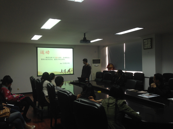 首先,来自秘书处的邢未平同学为大家介绍了一些运动的知识,从是什么,为什么,怎么样三个角度阐述了什么是运动,为什么要运动,还有怎么样合理的运动。健康的生活习惯还有良好的饮食习惯加以运动,我们才能有更充沛的经历投入学习中去。