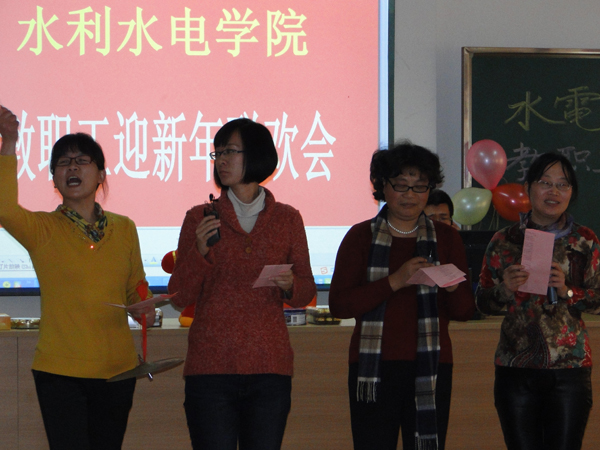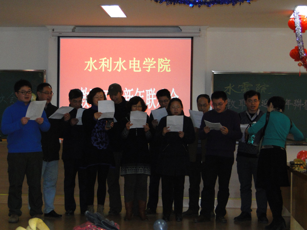 在水电馆401举办了辞旧迎新联欢会,水电院顾冲时院长、张展羽书记、陈菁院长、肖洋院长、沈振中院长、戴玉珍副书记以及全院教职工近百人欢聚一堂,其乐融融。联欢会现场气氛和谐美满,亮点纷呈,高潮迭起。