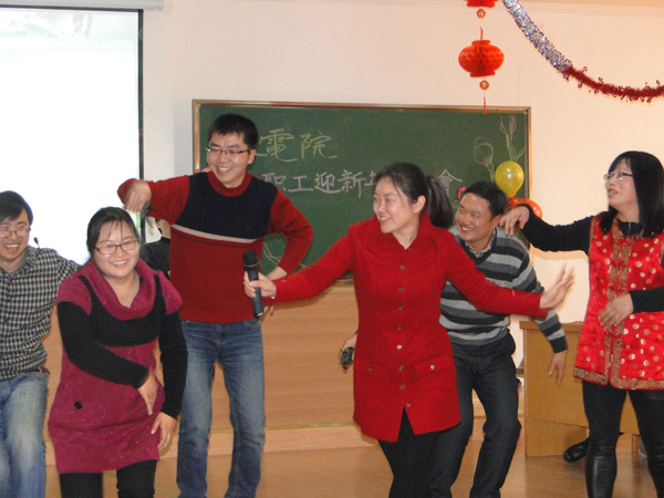 一首热情洋溢的开场舞“卓玛”拉开了联欢会的序幕。张书记宣布联欢会正式开始,顾院长总结了2013年学院取得的成绩。接下来是学院各教工支部表演节目,水工支部表演的“三句半”,诙谐幽默,很快带动现场一片笑声;皇冠赌场