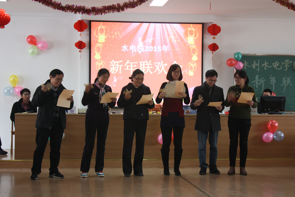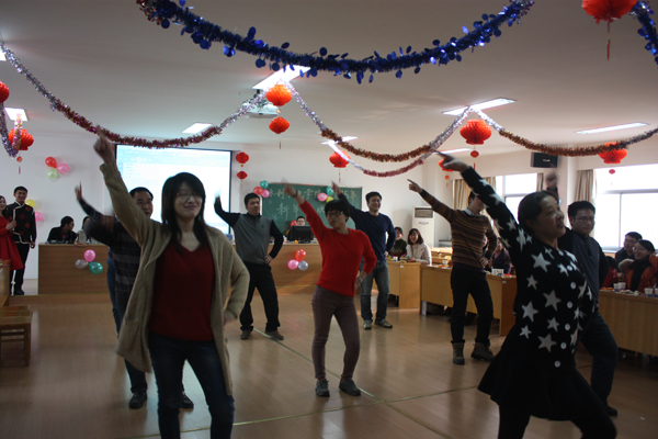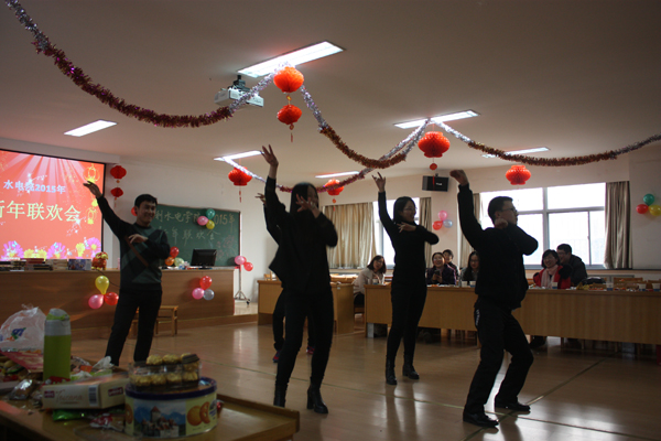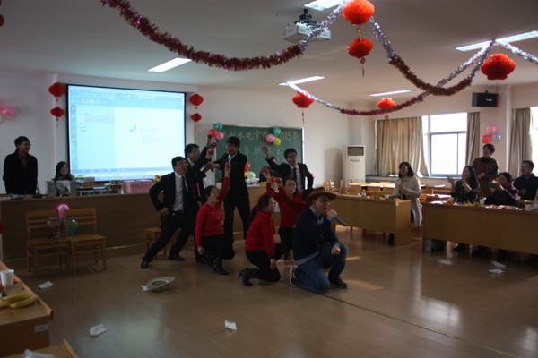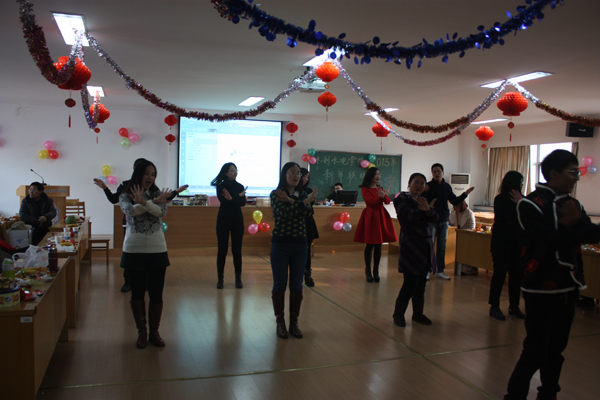所小合唱-友谊地久天长,两办支部的手语舞—幸福的脸,让人耳目一新的是农水支部自编自导的表演唱--我的番茄是干净的把我们的联欢会推到了高潮;节目中间穿插的小游戏,让大家捧腹不止,气氛活跃。(陶艳芝)
