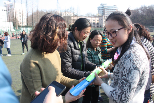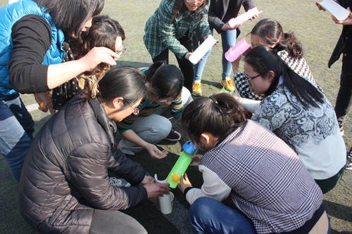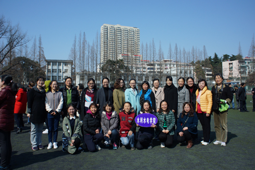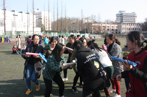 昨天在操场上,学院女教工来的还真不少,借着温暖的阳光和拓展训练教练的感召力,大家脸上洋溢着美丽、年轻的笑容。