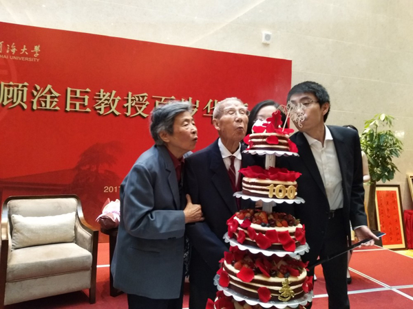4月18日顾淦臣教授百年华诞在河海大学国际交流中心举行,水工结构研究所的老师们参加了庆典仪式并和顾淦臣夫妇合影。(供稿人:陶艳芝)