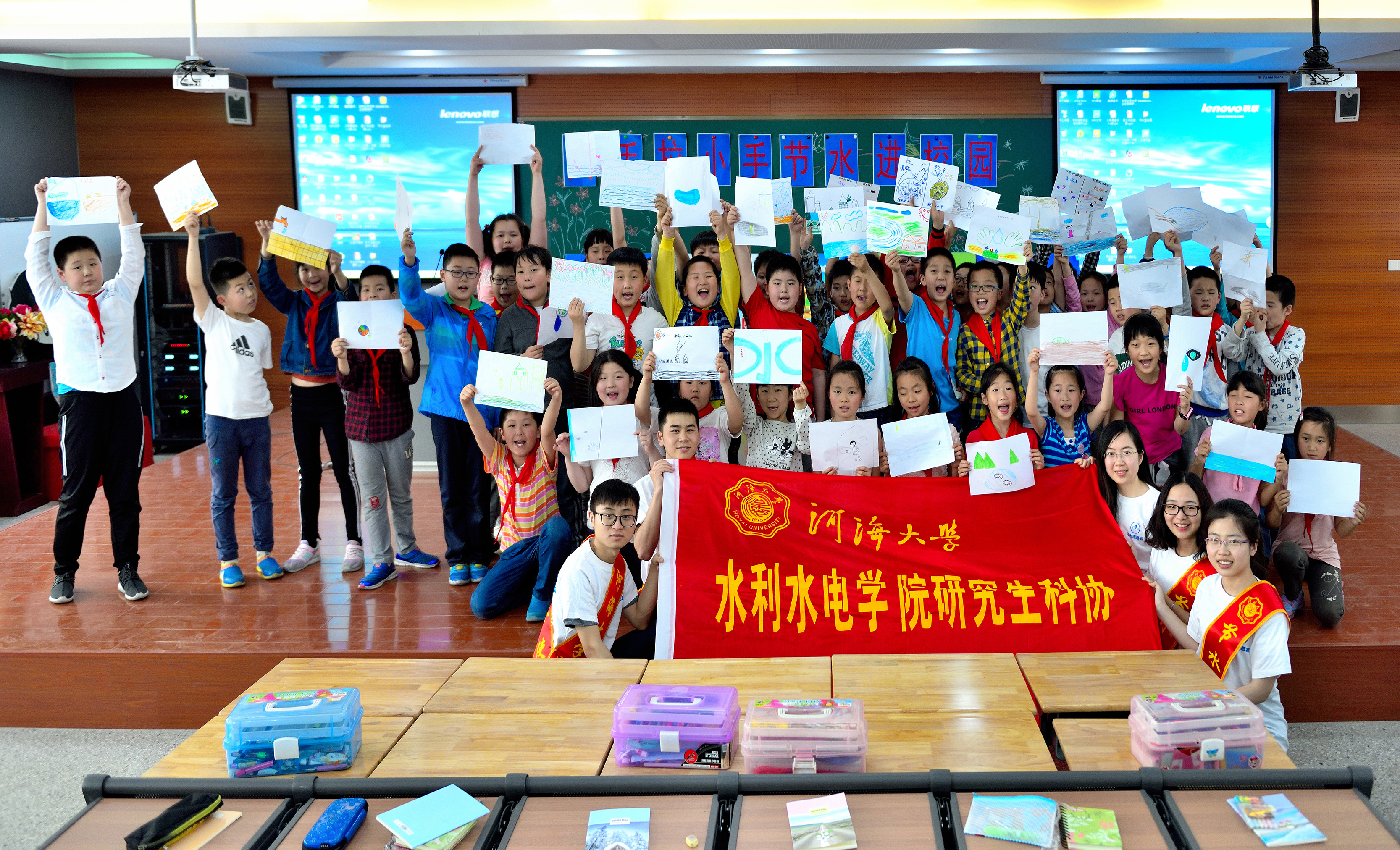 5月18日下午,为响应2017年全国科技活动周暨我校第二十九届科普周活动的号召,河海大学水电院研究生科协走进南京市府西街小学,以“节约用水,从小做起”为主题,开展了“大手拉小手,节水进校园”水知识普及教育活动,本活动由河海大学水电院和南京市节水供水管理处合作举办。
