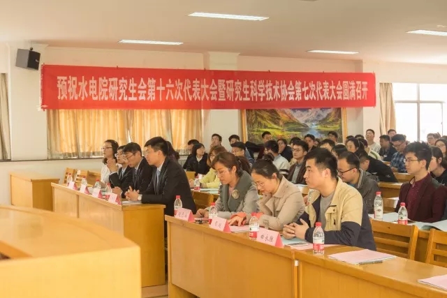 2018年3月30日下午,皇冠赌场-皇冠娱乐-皇冠赌场app 研究生会第十六次代表大会,研究生科学技术协会第七次代表大会在水电馆401顺利举行。校团委副书记戴媛媛老师、皇冠赌场 党委书记任旭华教授、副书记戴玉珍老师、研究生教学秘书周昶老师、研究生辅导员赵志涵老师、曲永胜老师莅临本次会议,出席会议的还有校研会代表笪步源同学、校研科协代表高鹏同学,兄弟学院研会、研科协代表,皇冠赌场 第十五届研究生会和第六届研究生科协全体成员,以及各级硕士研究生和博士研究生代表。