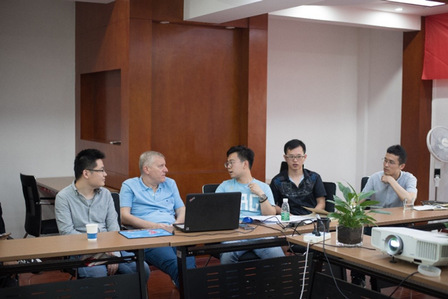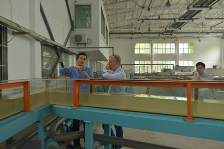 6月2日,在河海大学泥沙实验室与唐洪武教授、袁赛瑜老师等讨论交汇口物质掺混的现场实验,在测量参数、断面设置、测量周期等方面提供了很多宝贵的经验。