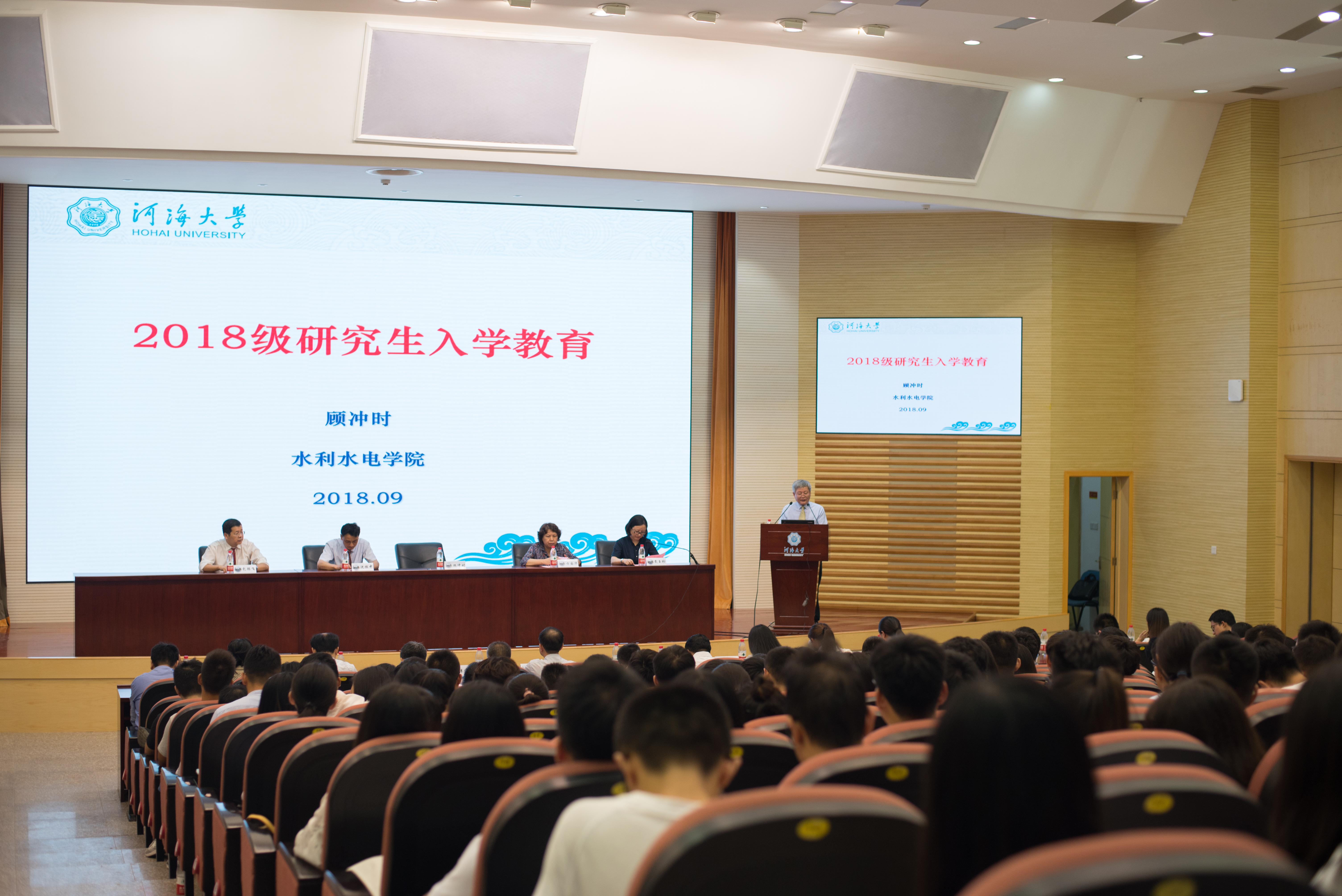 2018年9月13日晚,皇冠赌场 研究生迎新暨开学典礼于闻天馆108顺利举行。皇冠赌场 院长顾冲时教授、副院长方国华教授、沈振中教授、院长助理包腾飞教授,及各相关二级机构负责人出席了典礼。本次典礼由戴玉珍副书记主持,在庄严的国歌声中,本次典礼拉开帷幕。