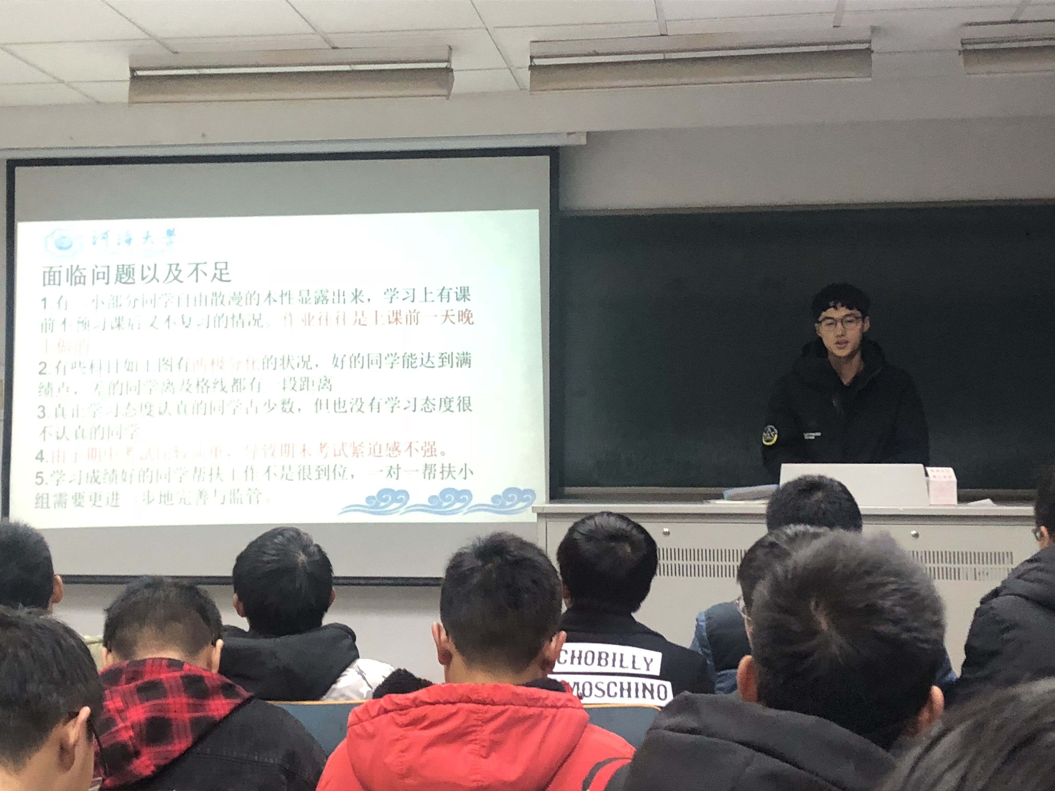为加强过程化管理,提升新生自我约束力,有计划地开展学习工作。各班班长首先通报了各班近期整体情况,指出了日常管理和学风建设方面的优点与不足,制定了改善本班现存不足的班规制度。姜帆老师宣布了期末学风建设的具体举措,以学生为主体,从实际出发,对于高等数学、工程制图和visual basic三门课程制定了针对性的期末促学计划,预计于考试月有序开展“以助促学,志愿帮扶”、“模拟课堂”和“模拟考场”等卓有成效的学风建设活动。此外,姜帆老师还严肃了考风考纪,号召大家文明考试,做诚信大学生。会后,同学们普遍认为本次大会很有意义,能够帮助大家有条不紊地复习,即将开展的各项学习活动也提升了大家的信心,以充足的准备和良好的风貌面对即将到来的期末考试。