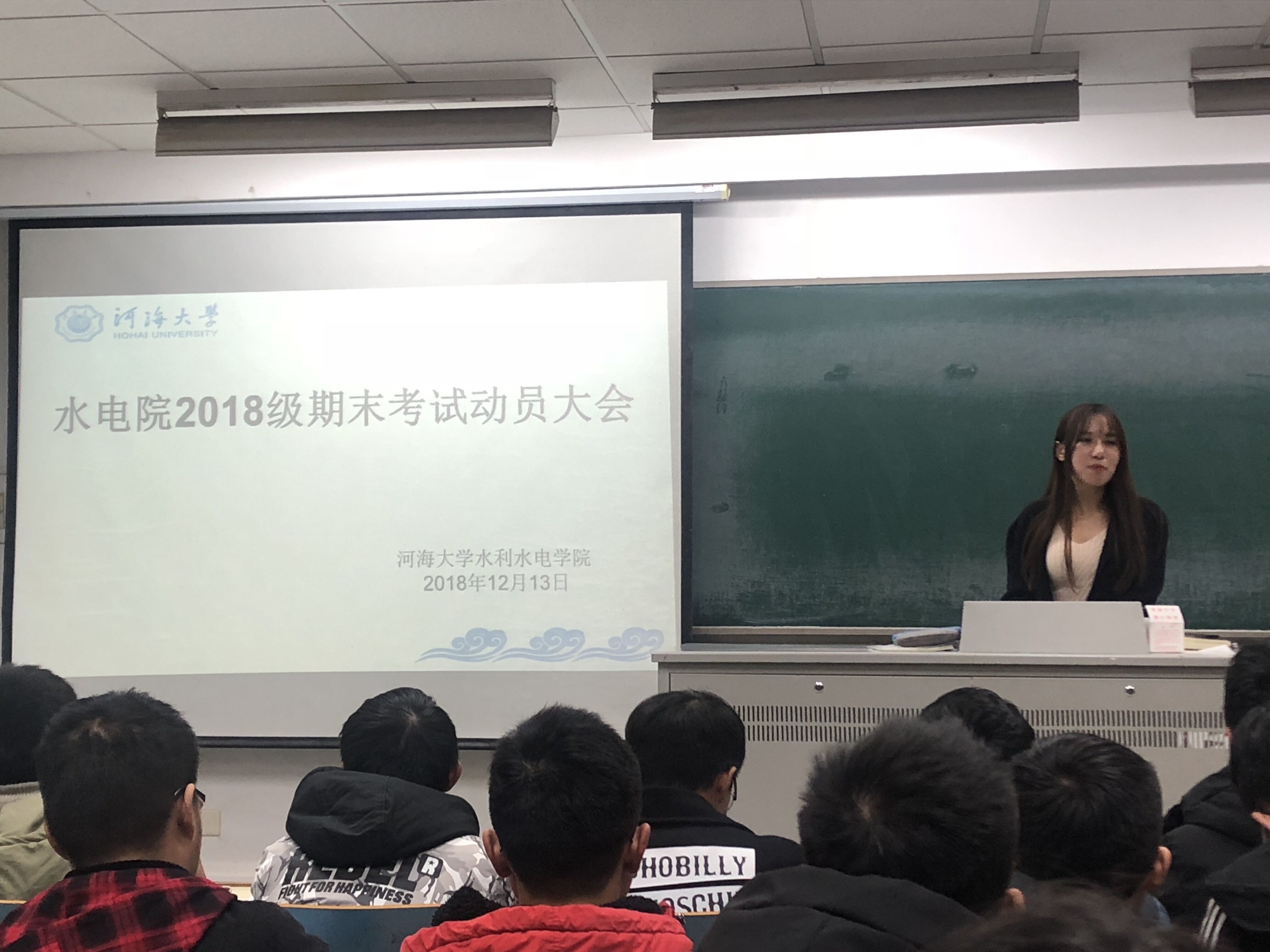 为贯彻学校教育教学工作会议精神,进一步加强皇冠赌场 学生的学风建设和诚信教育,紧抓不懈,齐头并进,皇冠赌场 于12月13日举办期末考试动员大会,大会由18级辅导员姜帆老师主持,18级全体新生同学参加。