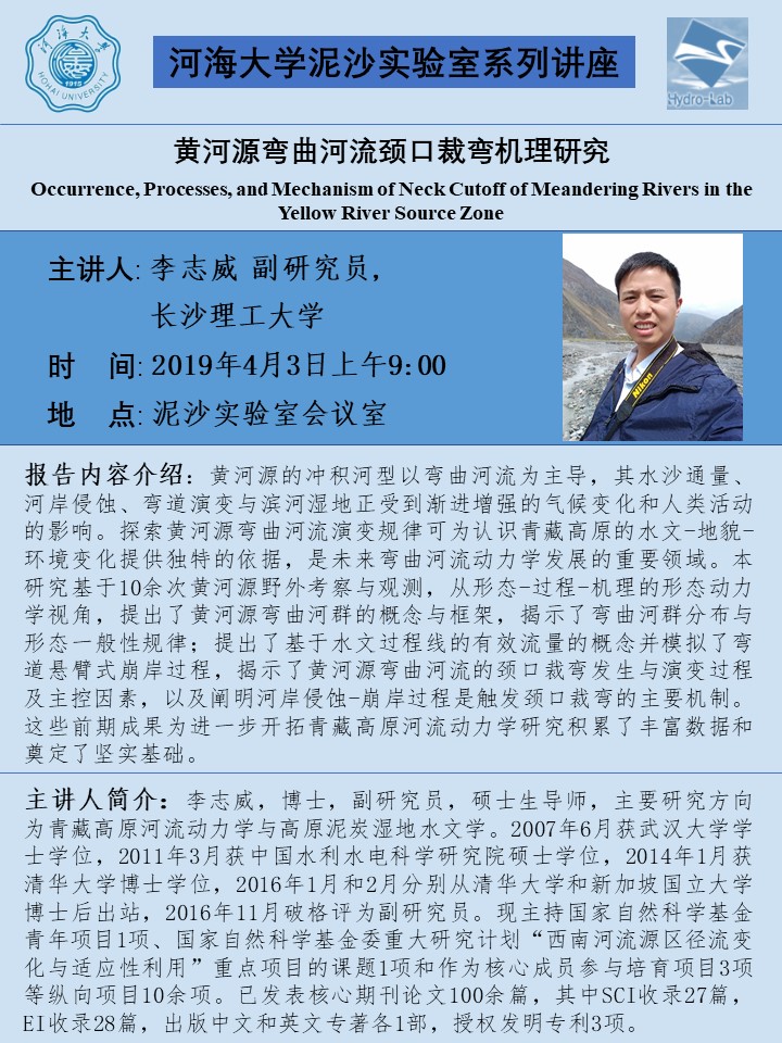 学术讲座-黄河源弯曲河流颈口裁弯机理研究