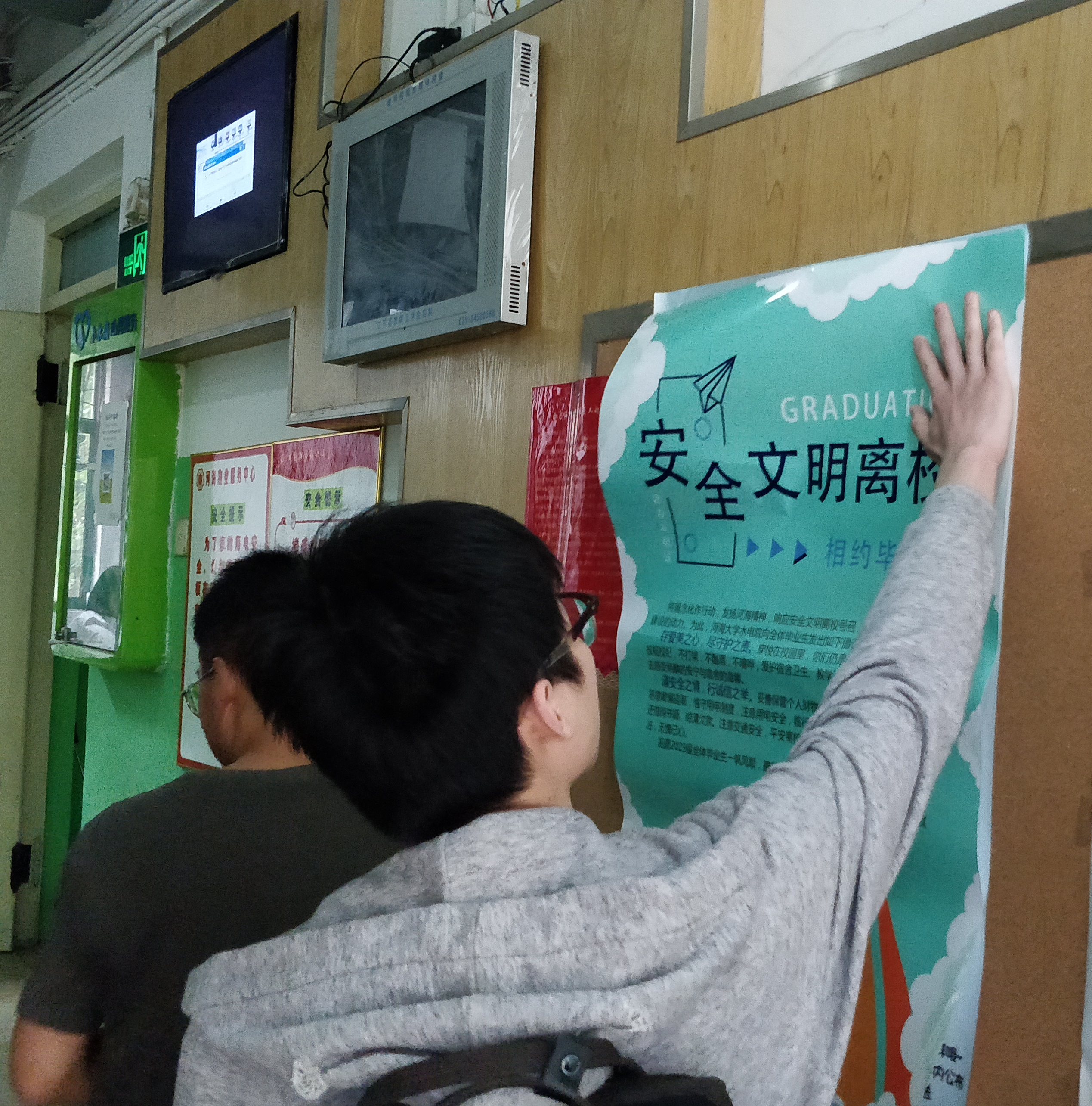 2019年6月,皇冠赌场 开展了毕业生“安全离校”活动。本次的活动分两个部分展开:第一,在各毕业生宿舍楼道张贴主题宣传海报,向毕业生们传播安全离校理念;第二,在一食堂门口开展“感恩母校无私培育情,倡导安全离校风”的签名活动,组织路过毕业生们在横幅上签名纪念。大家响应积极,并深情感谢母校的三年栽培。