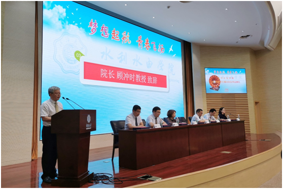 顾冲时院长在致辞中祝贺各位毕业生顺利毕业,并对大家寄予祝福和希望,希望同学们要把握水利发展形势,立足新时代,寻求新起点,思索新问题、迎接新挑战,一展河海水利人的智慧与风采!学业可以毕业,学习不可以毕业,所以要活到老学到老,青春可以毕业,梦想不可以毕业,所以要勇敢一点,时光可以毕业,同学情谊不可以毕业,所以要常联系。