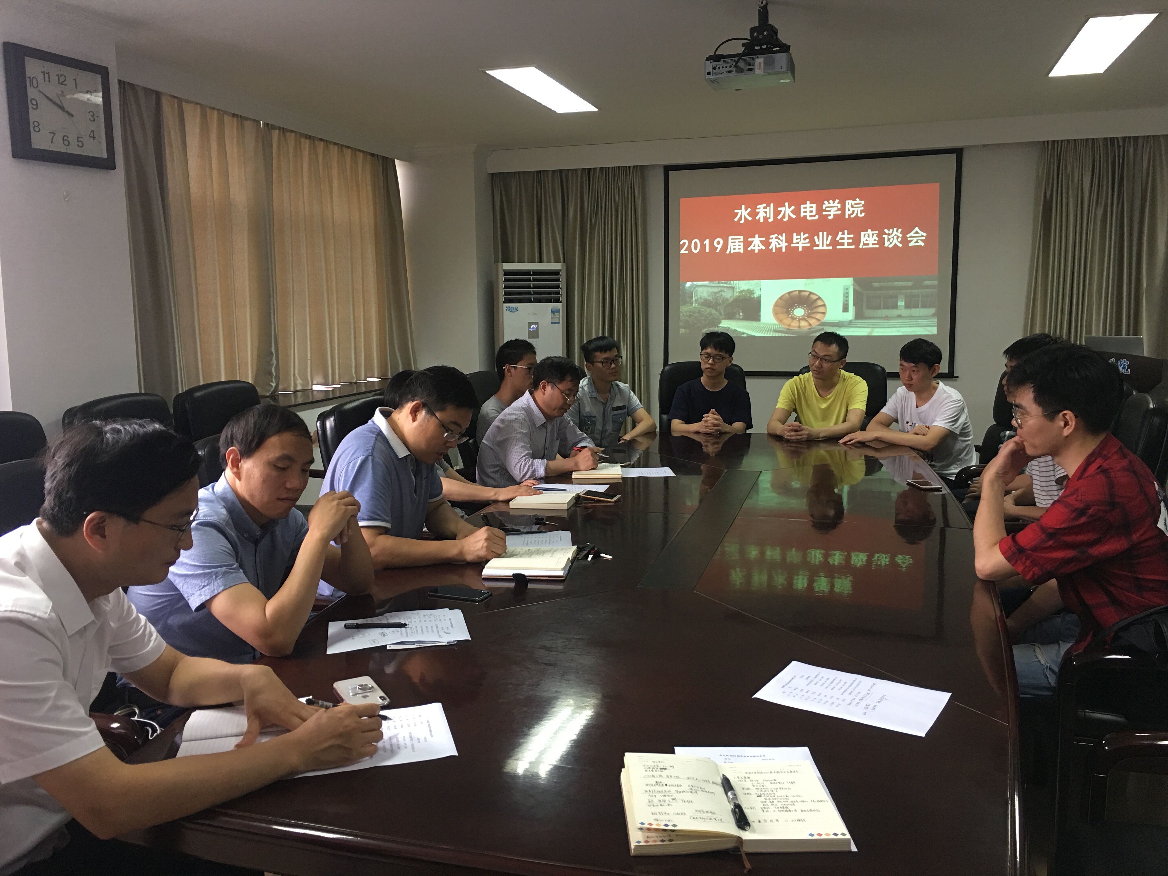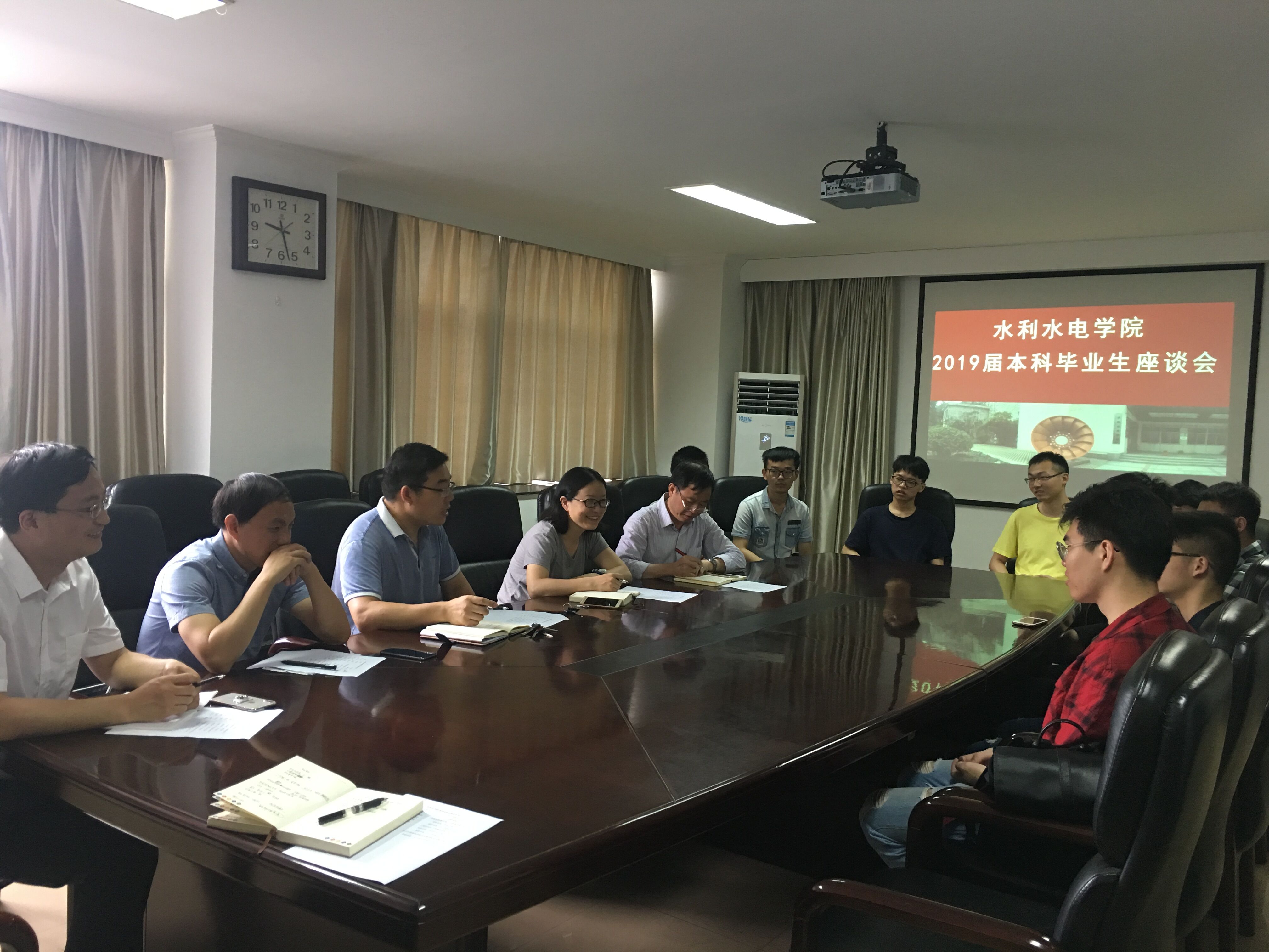 6月18日,皇冠赌场 举行2019届本科毕业生代表座谈会。会议由学院党委副书记戴玉珍主持,学院副院长张继勋、水电系主任蔡付林、副主任岑威钧、专业办主任徐磊,15、16级辅导员和2019届本科毕业生代表参会。
