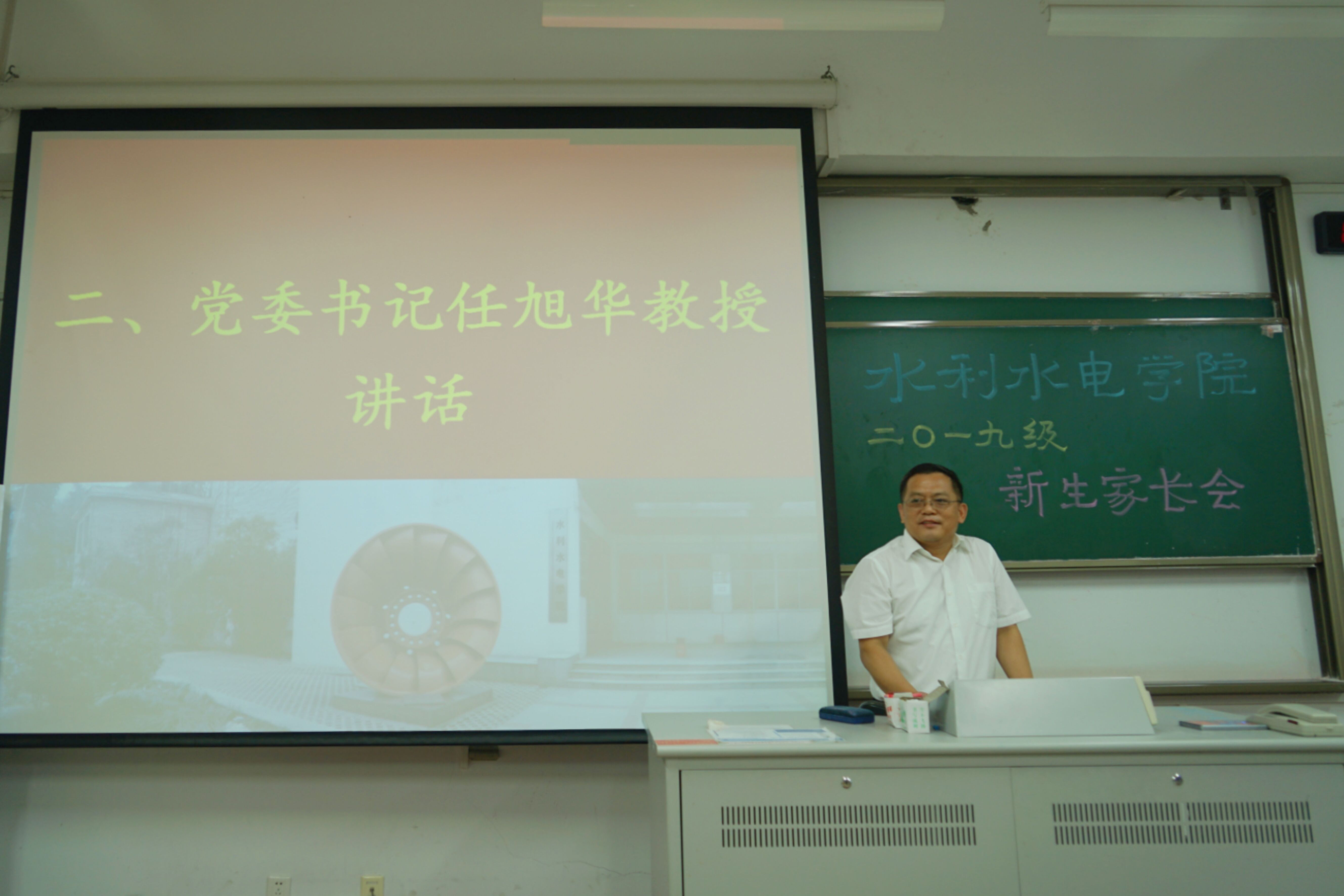 顾冲时院长对到场参会的新生家长们表达了热烈的欢迎和祝贺,就学院历史、发展现状、师资队伍等做了详细介绍,表达了学院为学生成长成才提供有力保障的信心,并就“安全”方面提出了三点要求。任旭华书记表达了学院对新一届学生的殷切期盼以及学院培养爱国情怀、时代责任、远大理想学生的决心。张继勋副院长与戴玉珍副书记为家长们详细介绍了学院关于人才培养与教育教学管理等方面的内容。