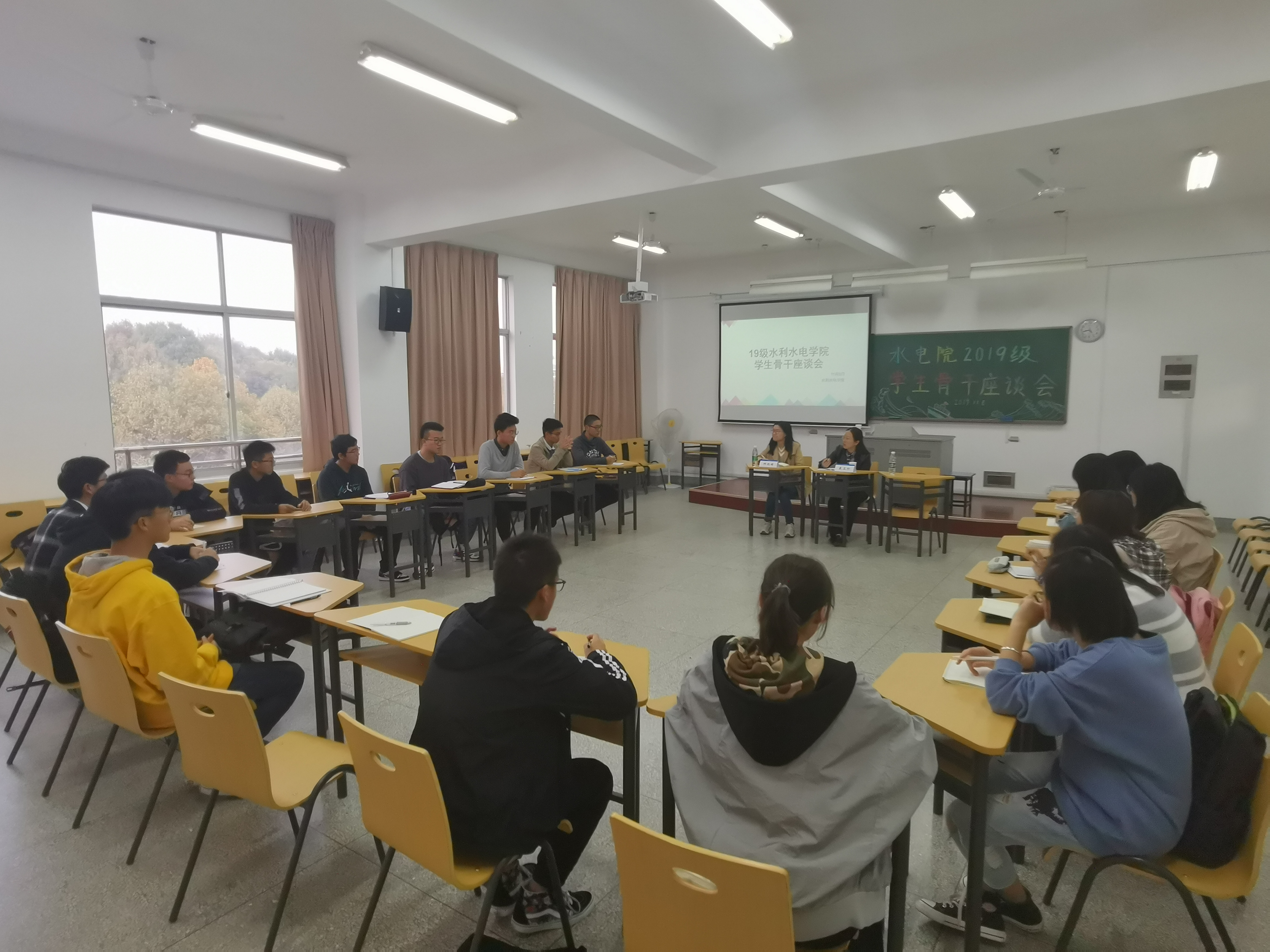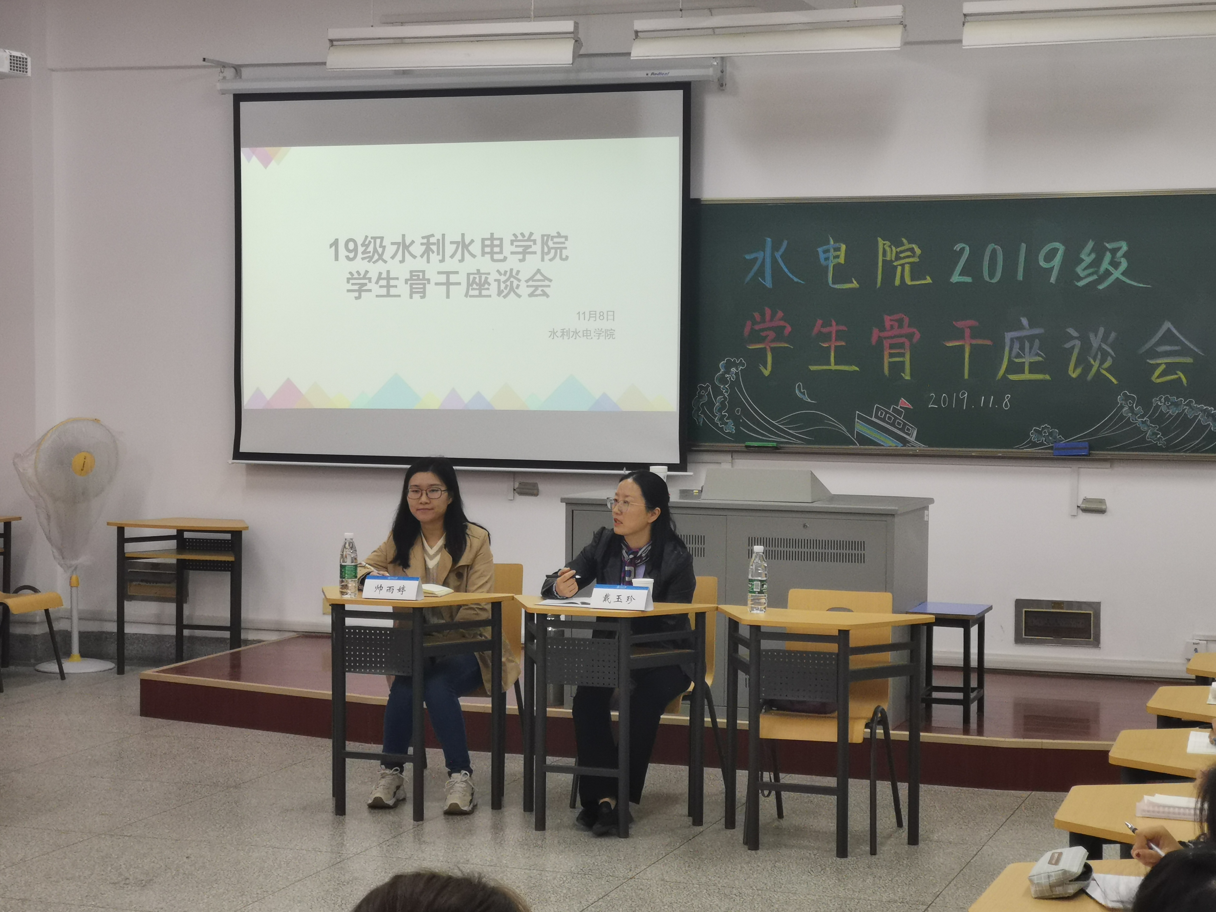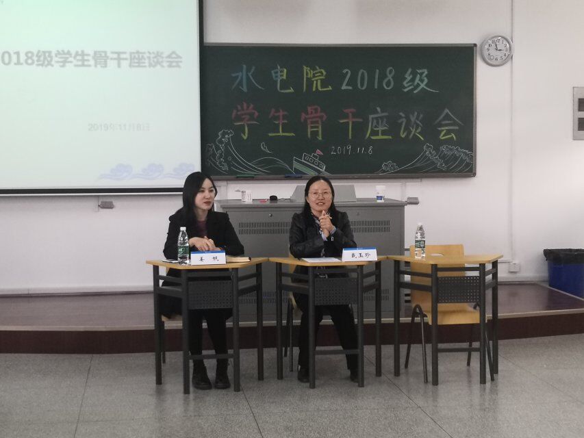 11月8日,为加强学生干部队伍建设,开拓学生工作思路,皇冠赌场 举行本科低年级学生骨干座谈会。院党委副书记戴玉珍、2018级辅导员姜帆、2019级辅导员帅雨婷和2018级、2019级全体年级委、各班班长和团支书参会。