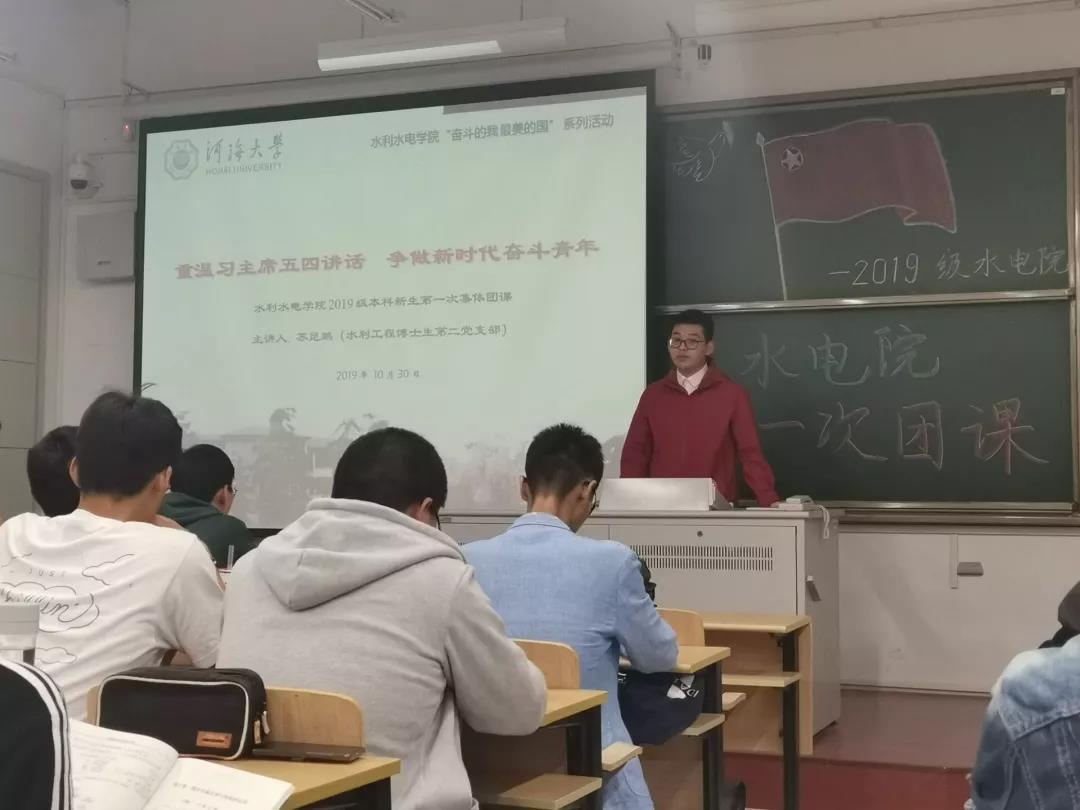2019年10月30日,学院成功举办了2019级本科新生第一次主题团课。本次团课邀请到学院博士生第二党支部苏昆鹏学长、水电院2016级夏定康学长,19级全体新生参加。
