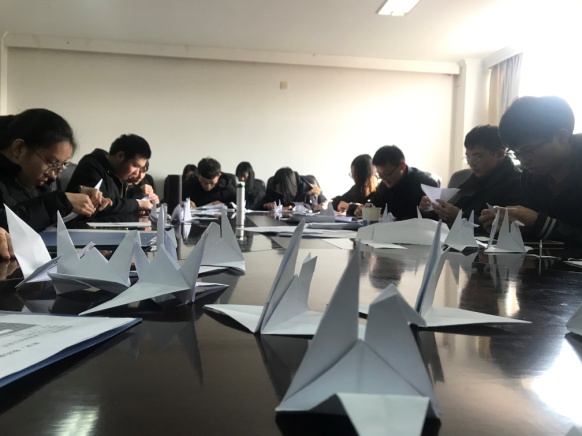 中午十二点半,本科生第一党支部的全体党员身着素装在水电馆329会议室集合,集体学习南京大屠杀的历史、高唱国歌,并由党员代表赵科皓和王慧动情朗诵“南京,我的南京”。朗诵结束后,全体党员亲手制作白色千纸鹤。随后,全体人员前往校内南京大屠杀死难者清凉山丛葬地“侵华日军南京大屠杀清凉山遇难同胞纪念碑”前手捧千纸鹤默哀一分钟,沉痛悼念和缅怀逝去的同胞,默哀毕,缓步绕纪念碑一周并在草坪中虔诚的放下千纸鹤以寄托哀思。活动的最后,全体党员再次回到水电馆329在肃穆的氛围中分享今日感悟,参加活动的学生纷纷表示,公祭日活动不仅让我们以尊崇之心珍视和平,以民族之力失志复兴,而且也激励青年人勿忘少年强则中国强的自勉道理,为实现中华民族伟大复兴而不懈奋斗。