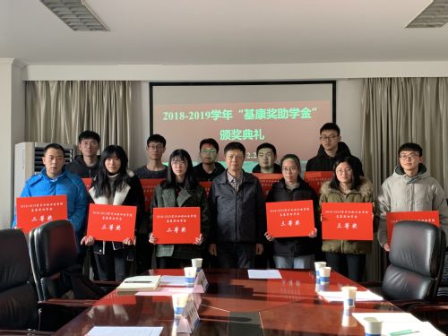 举行。北京基康公司副董事长沈省三、学院顾冲时院长、党委戴玉珍副书记,学院2016、2017级辅导员以及全体获奖同学参加仪式。