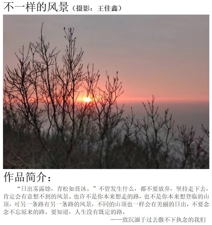 其实,山川异域,风月同天,无论是怎样的景致,我们都曾经在时光中轻轻走过,它们都曾经是我们生命中的一景。而想必也正是这样的风景,才使得我们在新型冠状肺炎疫情肆虐的这个冬天,即使在家中忍受着不能够出行的孤寂,也依然坚定地相信着,坚定地希望着:未来,在我们日日夜夜的等待中,在抗疫人员的辛苦奋斗下,新型冠状肺炎疫情疫情的严峻形势一定会彻底结束。此次摄影活动,是一次我们心灵的洗礼,更是我们内心深处对于疫情终将过去的坚定期待。