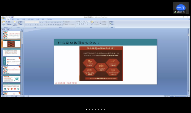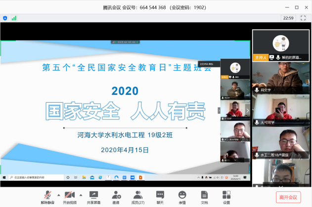 为提高大学生对国家安全的认识,建立一套理性的,符合时代特征和国家需求的教育框架,进而准确全面认识国家安全问题,树立正确的国家利益观。皇冠赌场 2019级的同学们以班级为单位,于2020年4月15日在线上开展了“同上一堂国家安全教育课”主题云班会,一起交流分享观看“同上一堂国家安全教育课”的感悟。