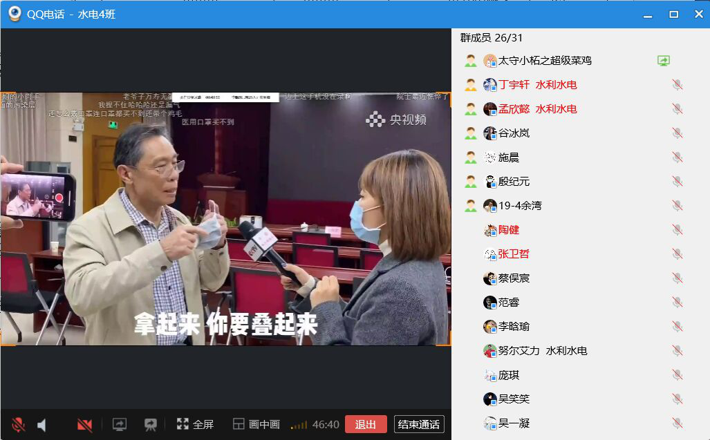 水工一班同学采取茶话会的交流方式,各抒己见,积极参与;水工二班的同学们则采取了故事分享,集体宣誓的方式进行班会;水工三班的同学结合党的十九大精神、和平时期人民国防观念淡化的现状,交流了各自对于加强国家安全教育的认识;水工四班在学习教育课后,组织知识问答,通过小组抢答检测学习效果;水工五班针对目前疫情防控举措,针对性的交流了面对重大社会问题时的国家安全。