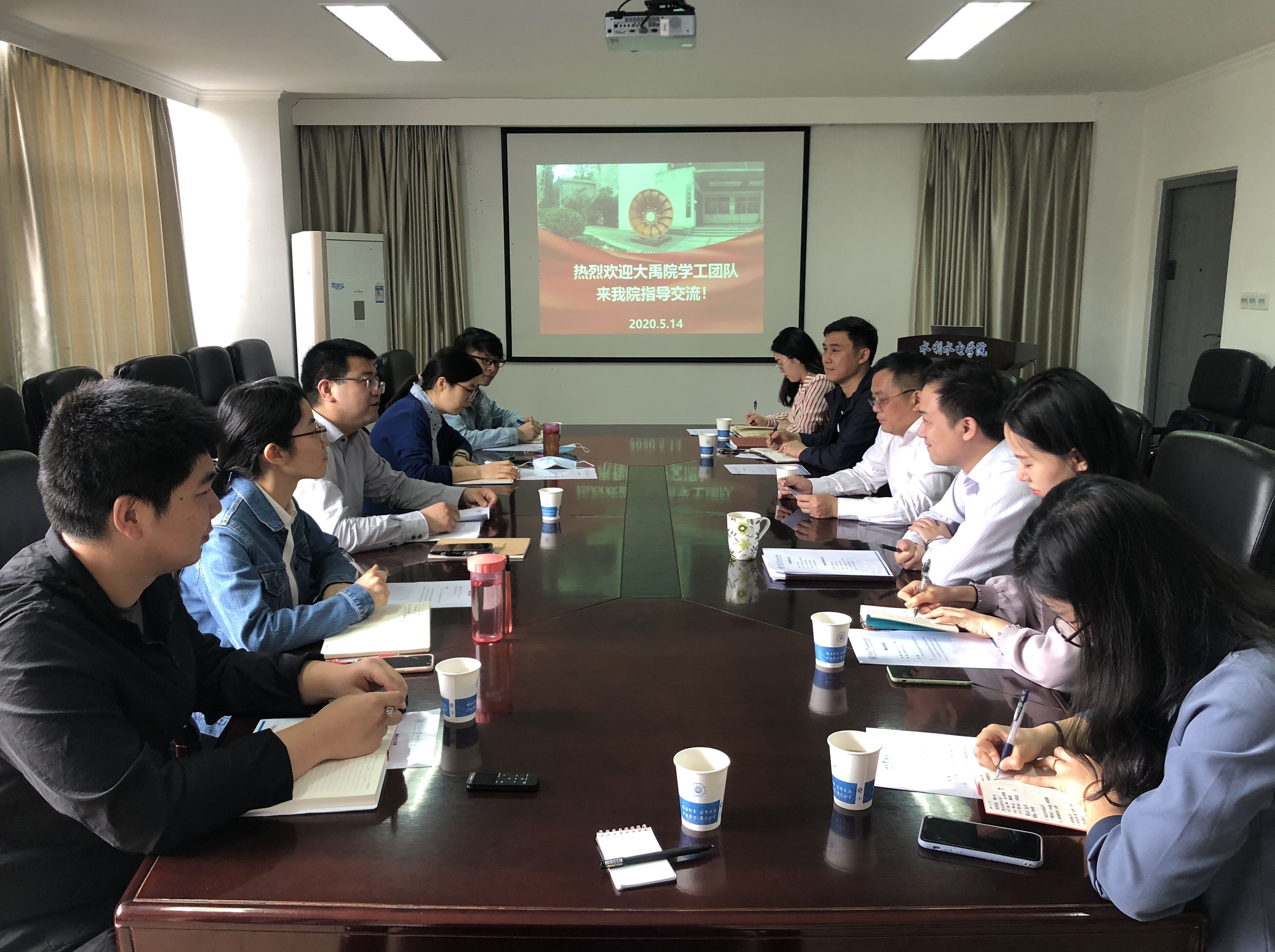 514日,大禹学院党委书记吴洪彪一行5人来皇冠赌场 调研,学院党委书记任旭华、党委副书记王方出席座谈会。