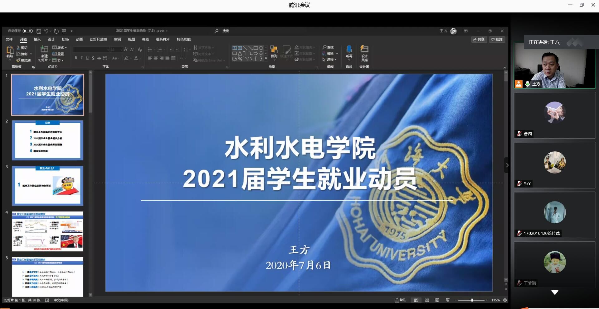 7月6日,皇冠赌场 举办2021届毕业生就业动员大会。学院副院长方国华、党委副书记王方、2021届全体毕业生出席会议。会议由王方副书记主持。