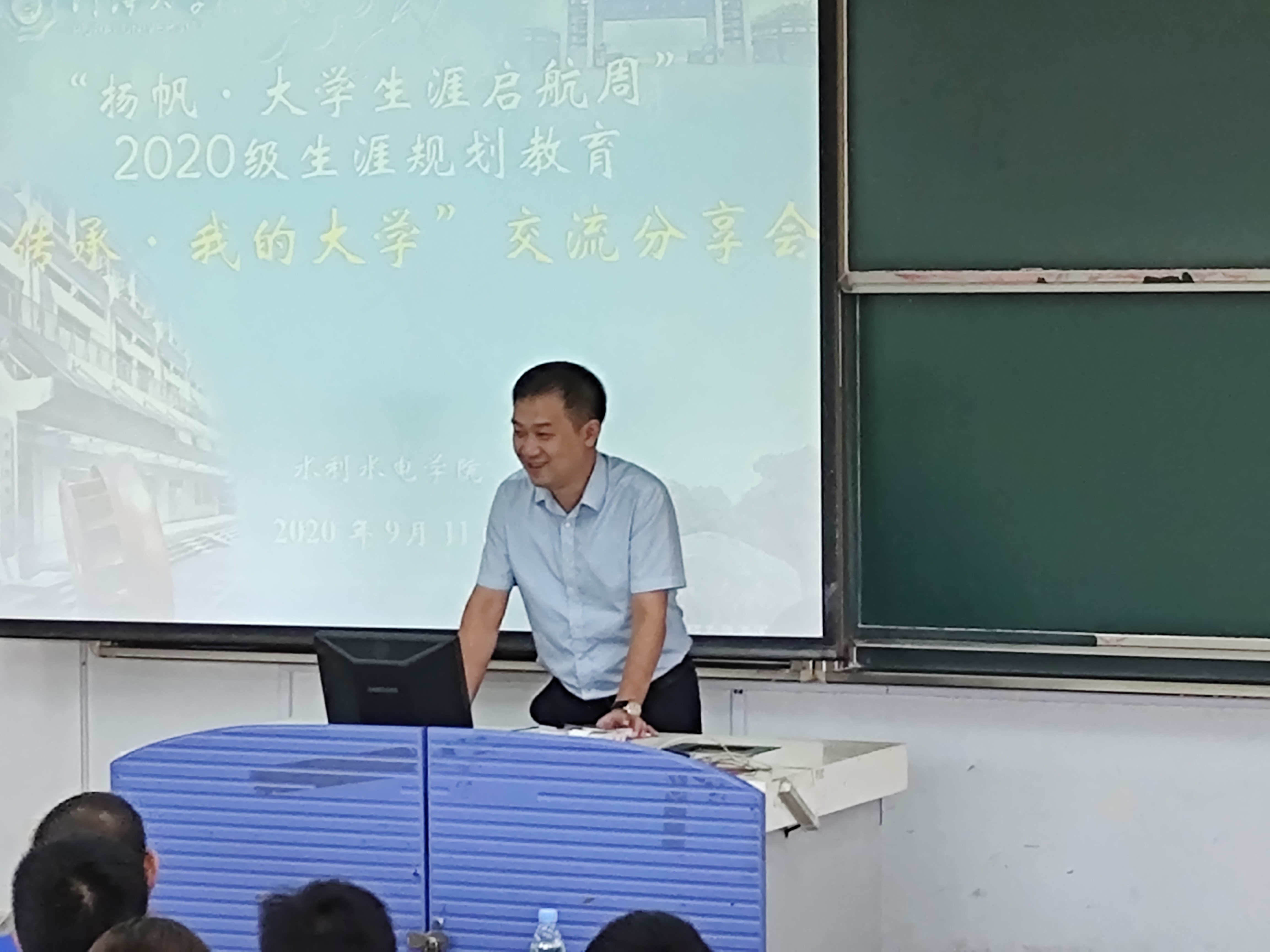 9月11日,2020级扬帆·大学生涯起航周活动之“传承·我的大学”交流分享会在江宁校区高B201如期举行,2020级全体同学以及辅导员参加分享会。分享会邀请皇冠赌场 2003届校友、南京市水务局基本建设和科技处副处长施丛丛,三峡电能(湖北)有限公司副总经理卞韬略主讲,院党委副书记王方主持。