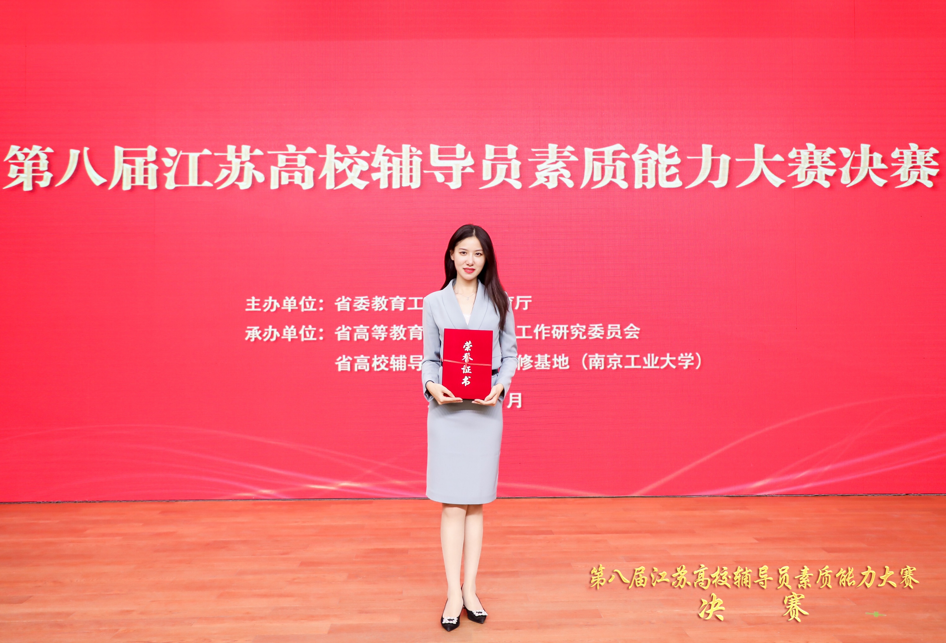 11月27日至28日,第八届江苏高校辅导员素质能力大赛决赛在南京工业大学成功举办。皇冠赌场 2018级辅导员姜帆老师,与来自全省40所高校的优秀辅导员同台竞技、尽展风华,以总分第二的好成绩荣获一等奖!