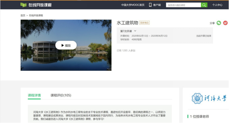 “走进水利”课程为河海大学公选课,以丰富的实例和绚丽的图文,介绍水利及水利教育的范畴和内涵,阐释水利的发展历程和卓越成就,说明水利人的工作内容和肩负责任,展现水利面临的严峻挑战和广阔前景。