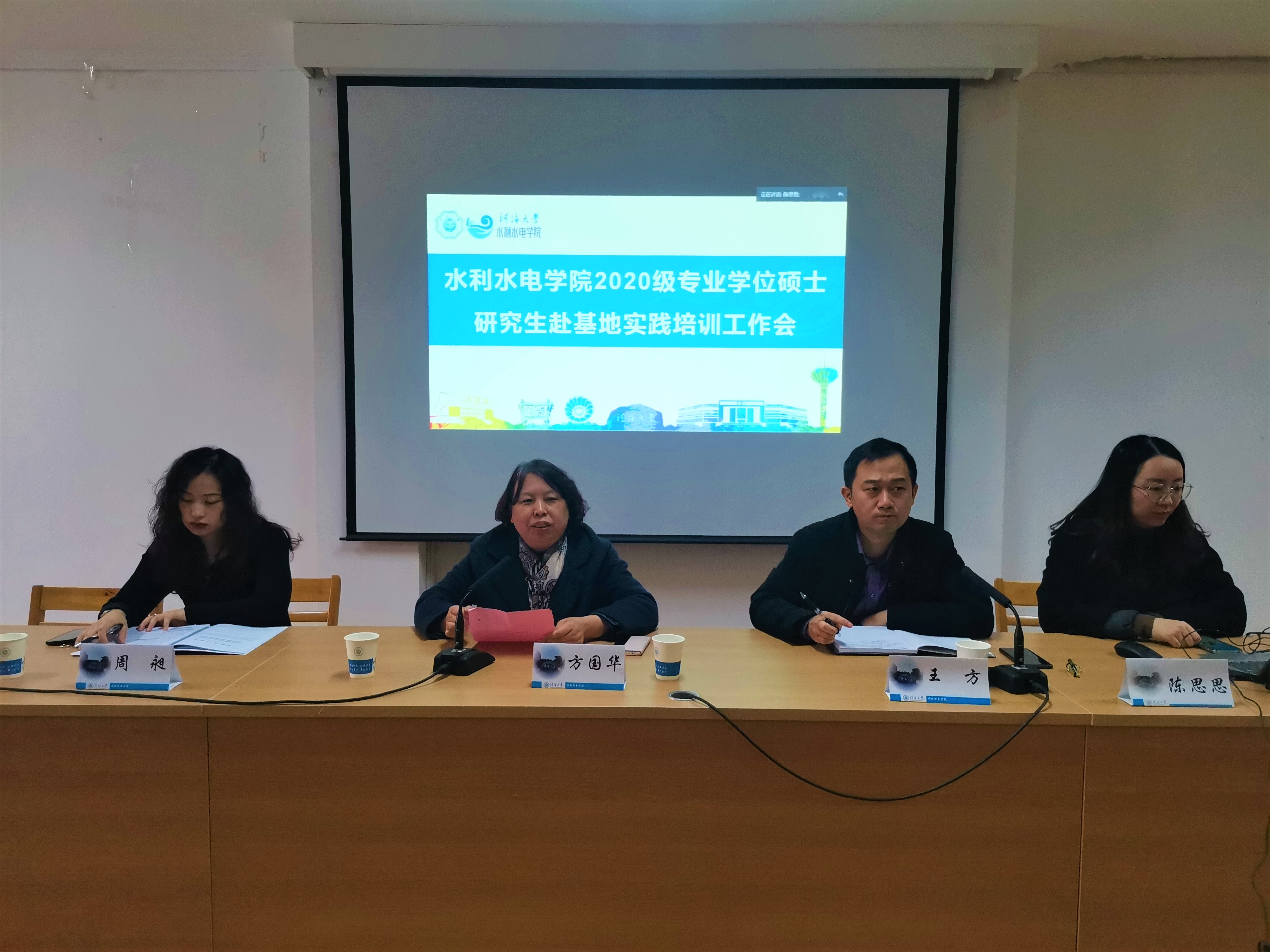 召开2020级专业学位硕士研究生赴基地实践培训工作会,副院长方国华、党委副书记王方、教学秘书周昶、研究生辅导员陈思思及2020级专业硕士研究生在线上线下参加此次培训工作会。会议由王方副书记主持。