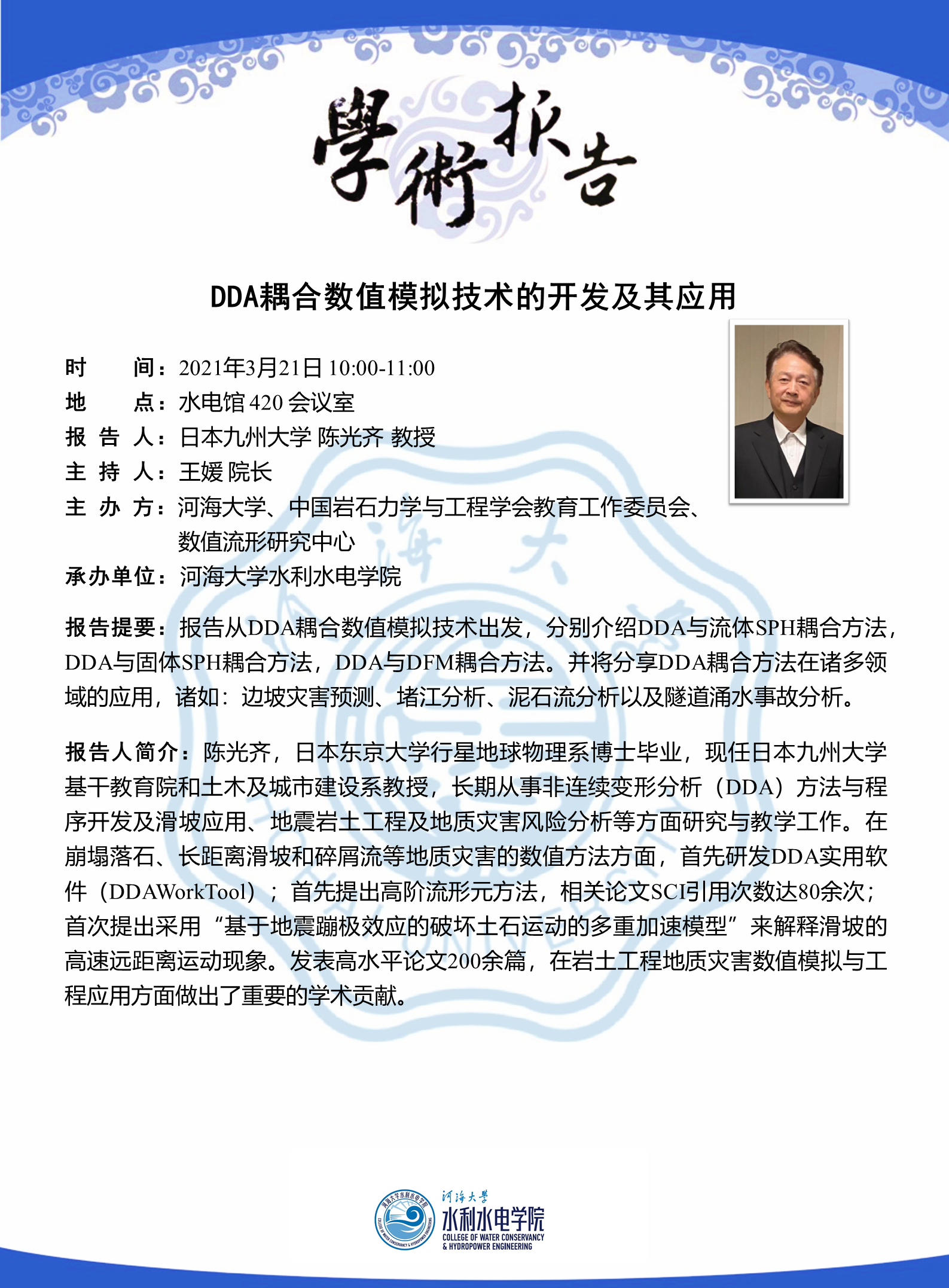 日本九州大学陈光齐教授学术报告:DDA耦合数值模拟技术的开发及其应用
