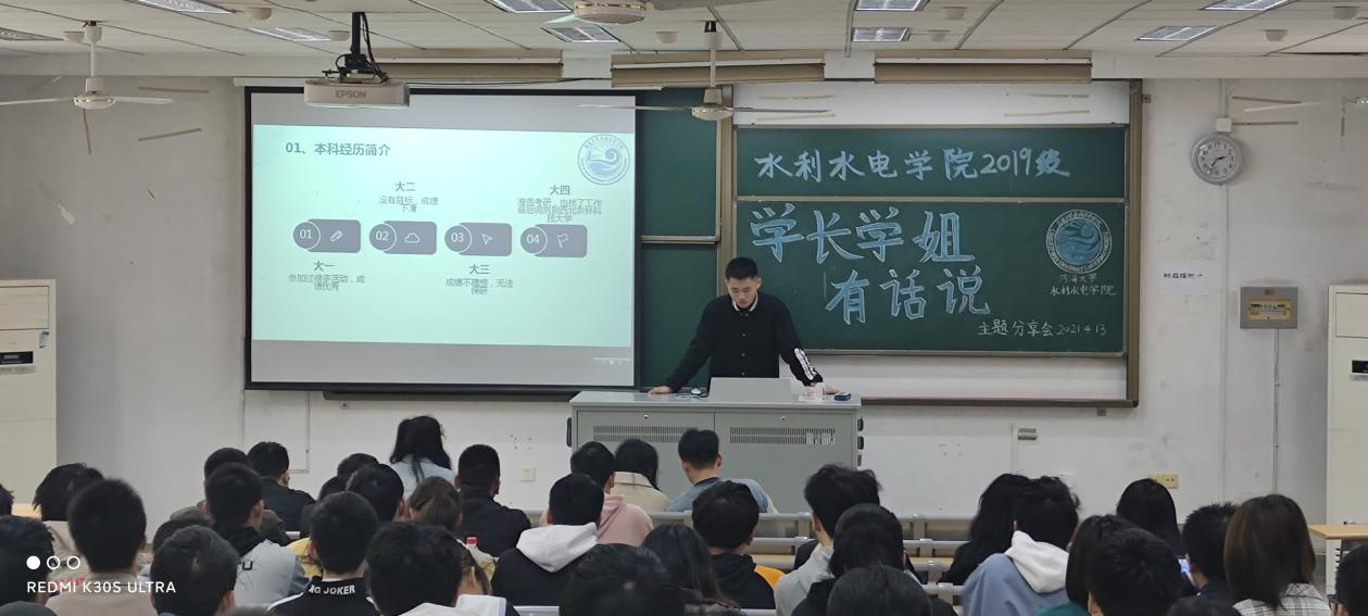 2021年4月13日下午,皇冠赌场 2019级本科生举办了“学长学姐有话说”学风建设主题分享会,邀请2017级优秀的学长学姐温家宣、闫致远、李柯雅分享学习经验、发展路径,2019级全体同学参与,辅导员帅雨婷出席。