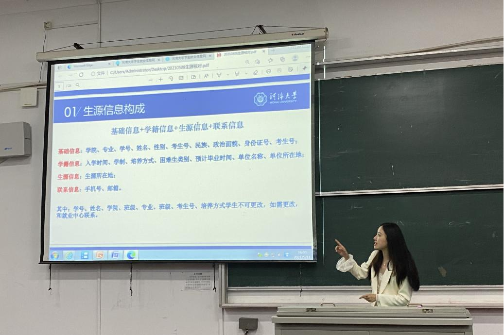 5月11日,皇冠赌场 开展2022届毕业生生源信息填报培训会。活动由2018级本科生辅导员姜帆老师主持,2018级全体本科生参加。