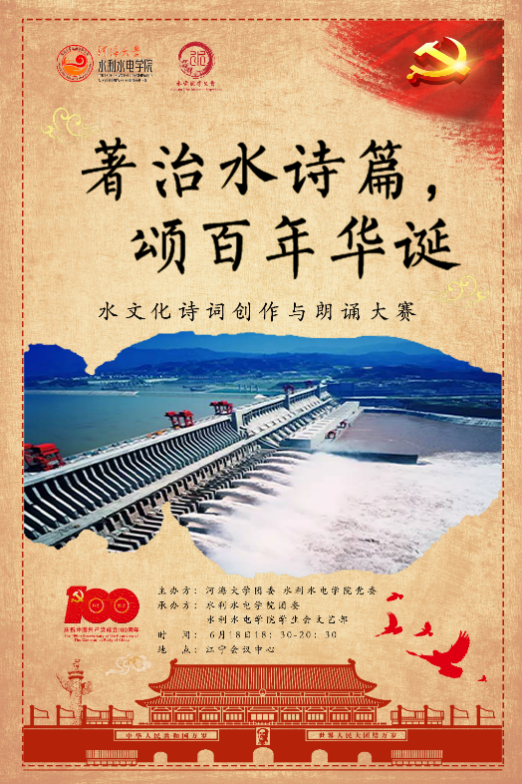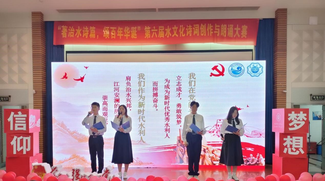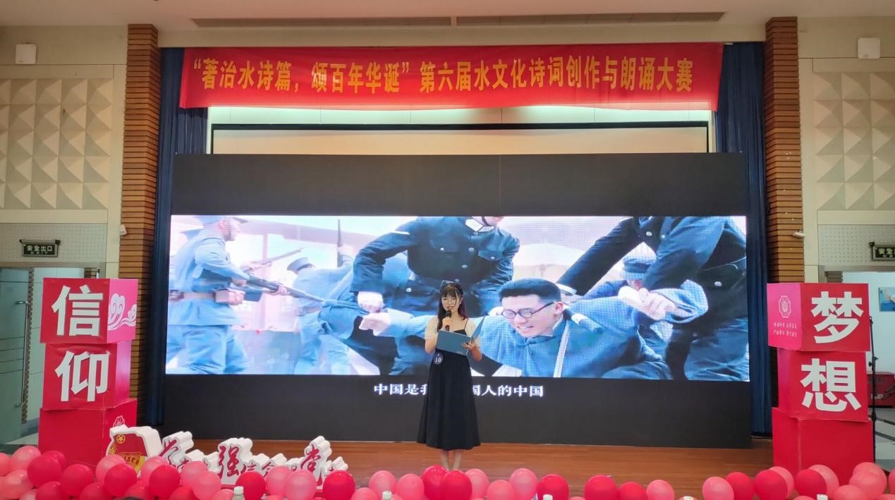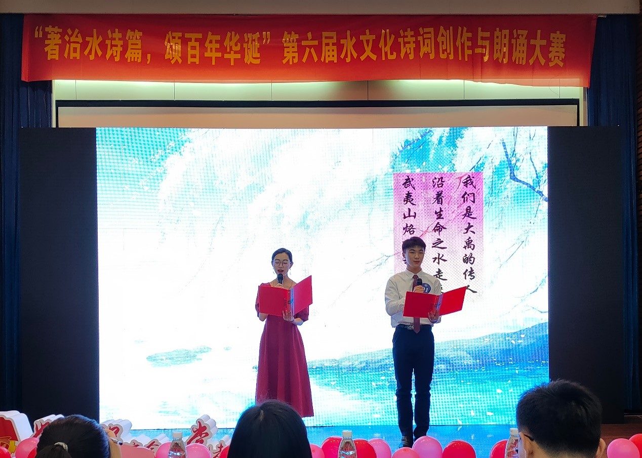 近日,由河海大学团委主办、皇冠赌场 承办的“著治水诗篇,颂百年华诞”第六届水文化诗词创作及朗诵大赛在江宁会议中心隆重举行。党委组织部季超、党委宣传部刘金凤、学生工作处孙悦、校团委王露露出席活动并担任评委,皇冠赌场 组织员胡瑞媛、团委书记笪步源、2019级本科生辅导员帅雨婷、2020级全体同学参加活动。