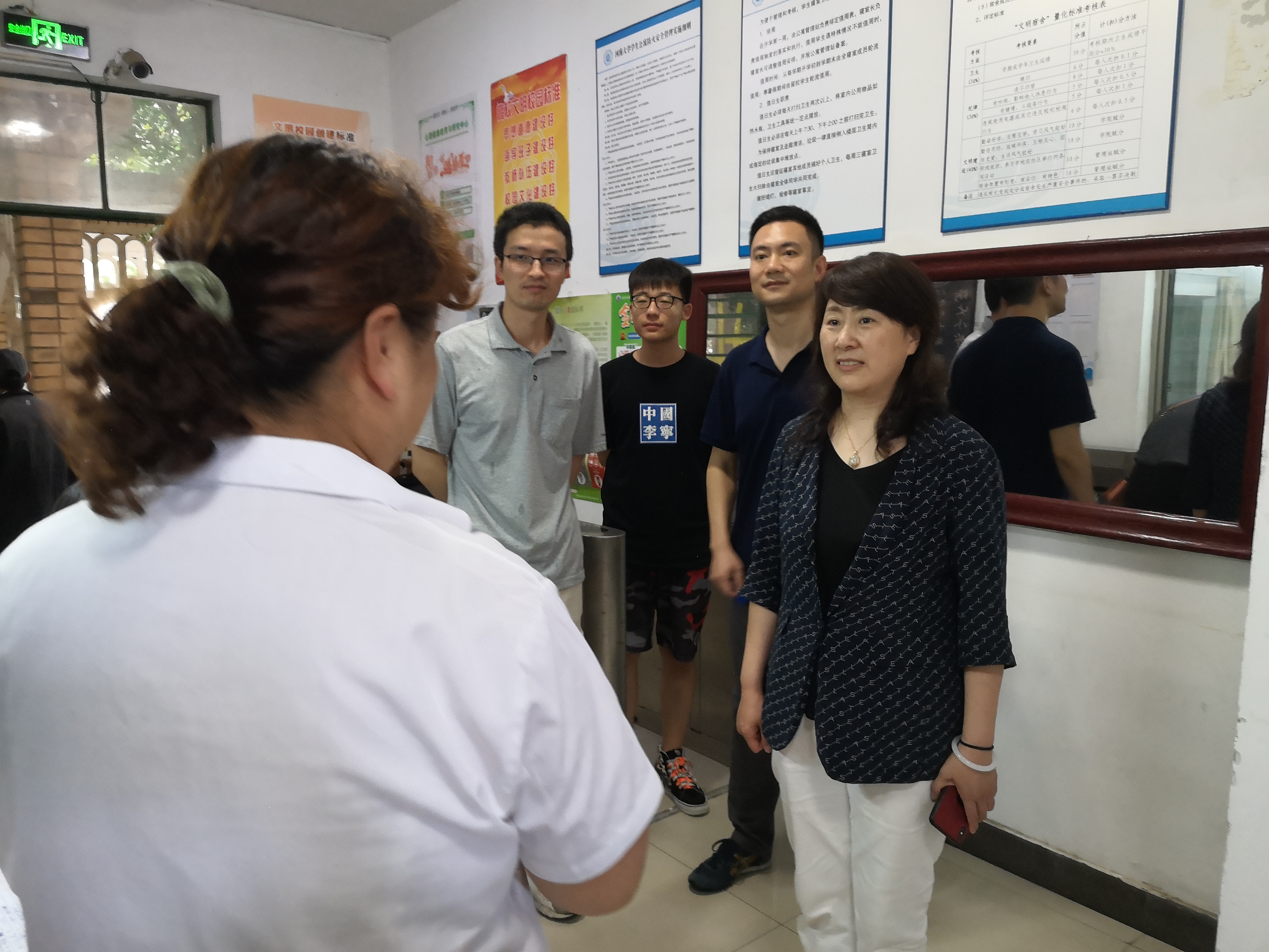 王媛院长一行先后来到新疆馆、女生二舍,了解学生搬迁情况,查看宿舍基础设施和环境卫生情况。王院长代表学院同学们表示热烈欢迎,高度评价大家自力更生、互相帮助、朝气蓬勃的精神面貌