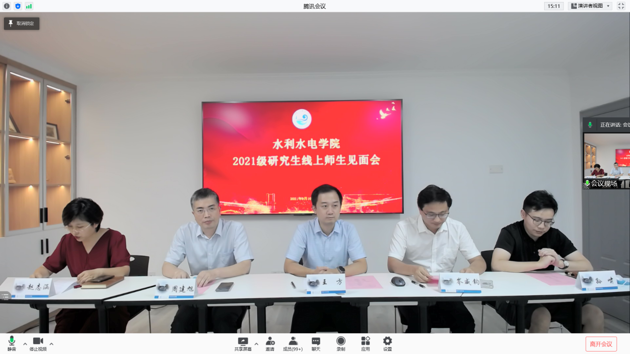 院党委副书记王方对2021级全体研究生新生表示热烈的欢迎和衷心的祝贺。他对2021级研究生同学提出三点希望:一是要用新身份适应新环境。在研究生阶段实现人格、素质、能力、知识的全面提升,以聪明才智贡献国家、将所思所学回馈社会。二是要用新梦想昭示新使命,在新的求学阶段以更高的标准严格要求自己,潜心学术科研,肩负水利人的使命与责任投身水利强国的伟业中去。三是要用新担当激发新作为,要树立远大理想,把水利事业发展作为终身奋斗的目标,继续发扬河海学子的优良传统,继续铸就学校和学院的辉煌。