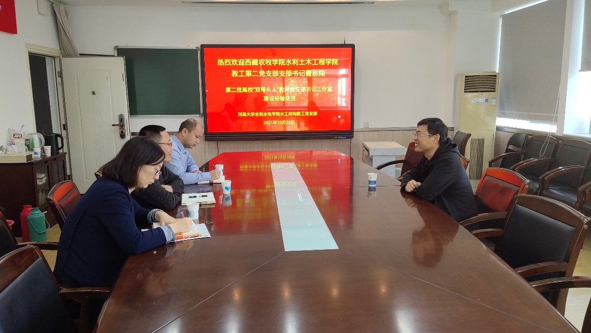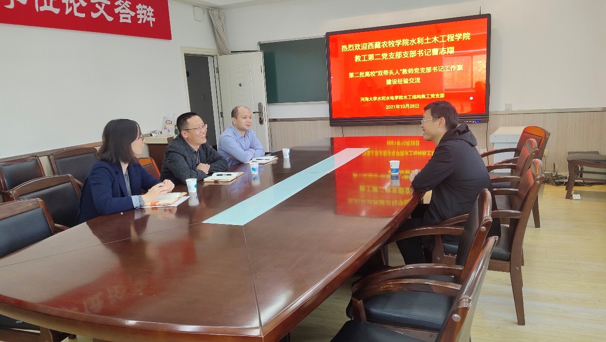 10月28日,皇冠赌场 水工结构研究所教师党支部与西藏农牧学院水利土木工程学院第二教师党支部开展结对共建。西藏农牧学院土木水利学院第二教师党支部书记曹志翔,皇冠赌场-皇冠娱乐-皇冠赌场app 水工所党支部书记赵兰浩、组织委员甘磊、宣传委员张汉云参加会议。