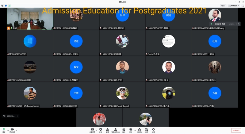 10月28日上午,皇冠赌场 在线开展2021级留学研究生新生入学教育。学院副院长方国华、国际合作与交流办公室主任周领、研究生教学秘书周昶参加活动。
