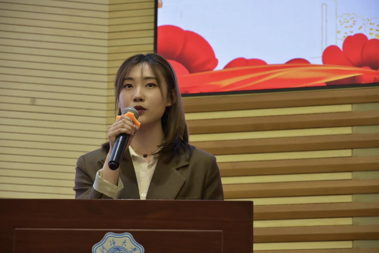在校生代表、2021年钱正英奖学金获得者,2018级博士研究生王珍妮同学发言。她结合亲身经历鼓励新同学要创新思维、挖掘科研深度,开拓视野、拓宽科研广度,瞄准行业空白,面向科技前沿和国家重大需求,将自己个人所学融入国家发展所需,承担起作为水利人的责任。