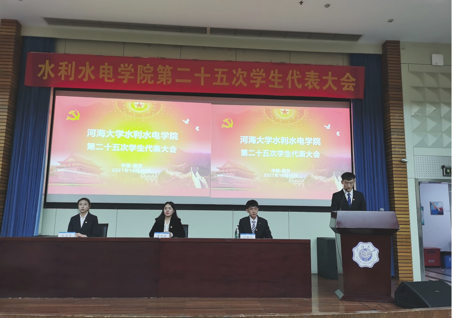 10月30日下午,皇冠赌场 召开第二十五次学生代表大会。伴随着庄严的国歌,大会拉开了帷幕。皇冠赌场 团委书记笪步源、校学生会主席团成员刘瀚元、院学生会主席张嘉芮出席会议,180名学生代表参加会议。