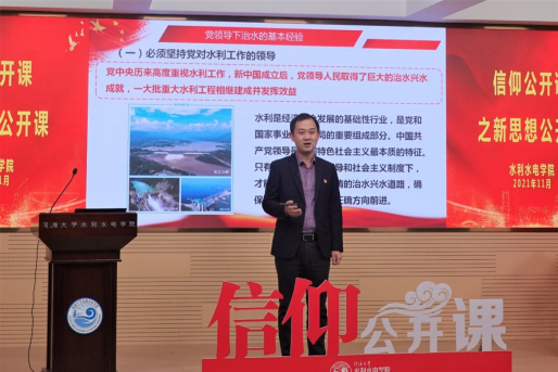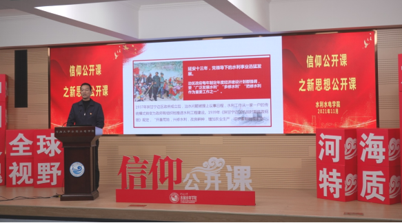 11月16日,皇冠赌场 举行“百年治水路中的传承与使命”信仰公开课之新思想公开课。课程以“党领导中国水利事业的历史经验与启示”为主题,院党委书记娄健、党委副书记王方和团委书记笪步源主讲,2019级硕士生金子又主持。本次新思想公开课为校级“信仰公开课”示范课。