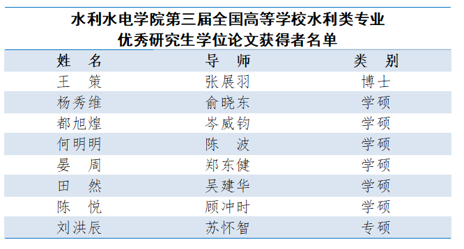 喜报 | 皇冠赌场 研究生学位论文获评 全国高等学校水利类专业优秀研究生学位论文