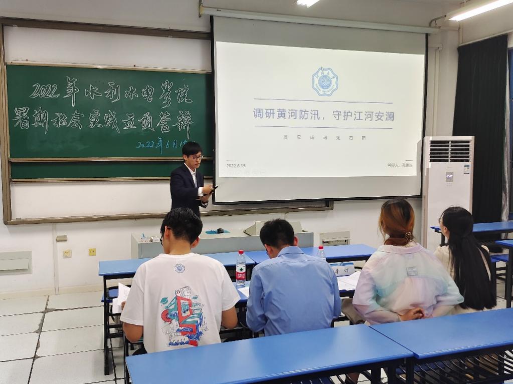 2022年6月15日,皇冠赌场 团委于励学楼A205举办2022年暑期社会实践校级立项答辩会。学院2021级辅导员侯开智老师,2020级辅导员梁培德老师、校科协主席团李汀、李冰逸同学担任此次答辩评委,答辩会由院团委实践部张荣翔同学主持。本次答辩会学院共计12支实践队伍参与答辩,实践主题涵盖南水北调调研、发展成就观察、乡村振兴、党史学习实践等多个主题,二十余位同学参与。