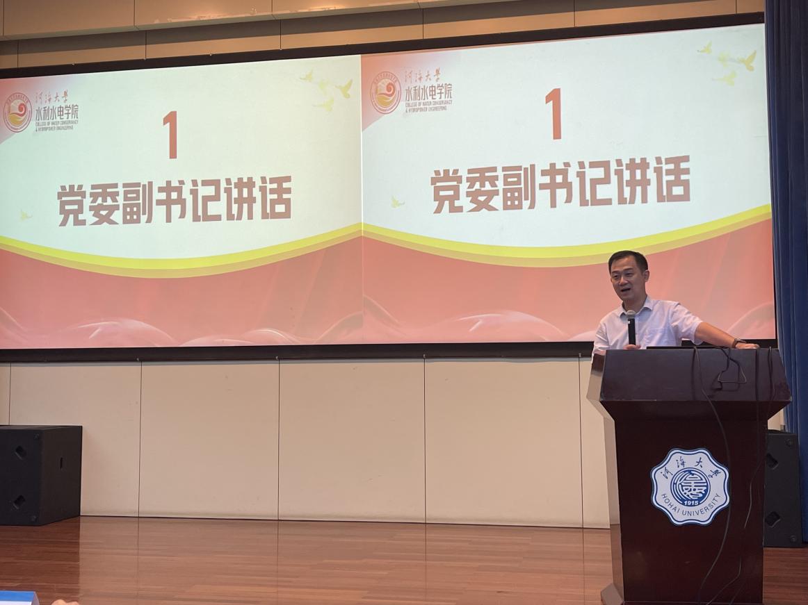 王方书记代表学院党委向参与暑期社会实践的全体师生致以亲切问候和美好祝愿,就为什么要做社会实践、如何做好社会实践提出三点分享和要求。他指出,社会实践是高校促进课堂教学与社会实际相结合、全方位培养高素质人才的重要方式,希望同学们一要在实践中探索时代发展,感受水利行业在党的带领下百年以来的前进与发展,同时对中国共产党的百年奋斗有更加深刻的了解,从而明确作为新时代水利人对社会主义事业发展的重要作用,二要在实践中展现河海风采,脚踏实地,吃苦耐劳,发扬“艰苦朴素,实事求是,严格要求,勇于探索”的河海精神,三要在实践中遵守各项规定,严格遵守实践地区相关的防疫要求,疫情区的同学采取线上等方式完成实践,非疫情区的同学在实践时做好防疫措施,以确保各项实践活动的顺利开展。