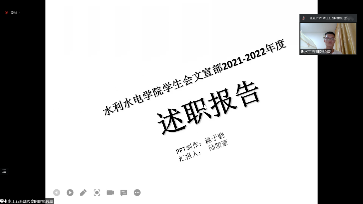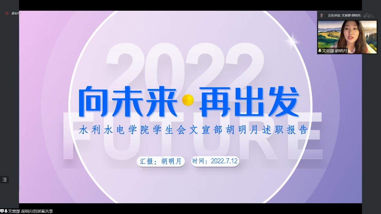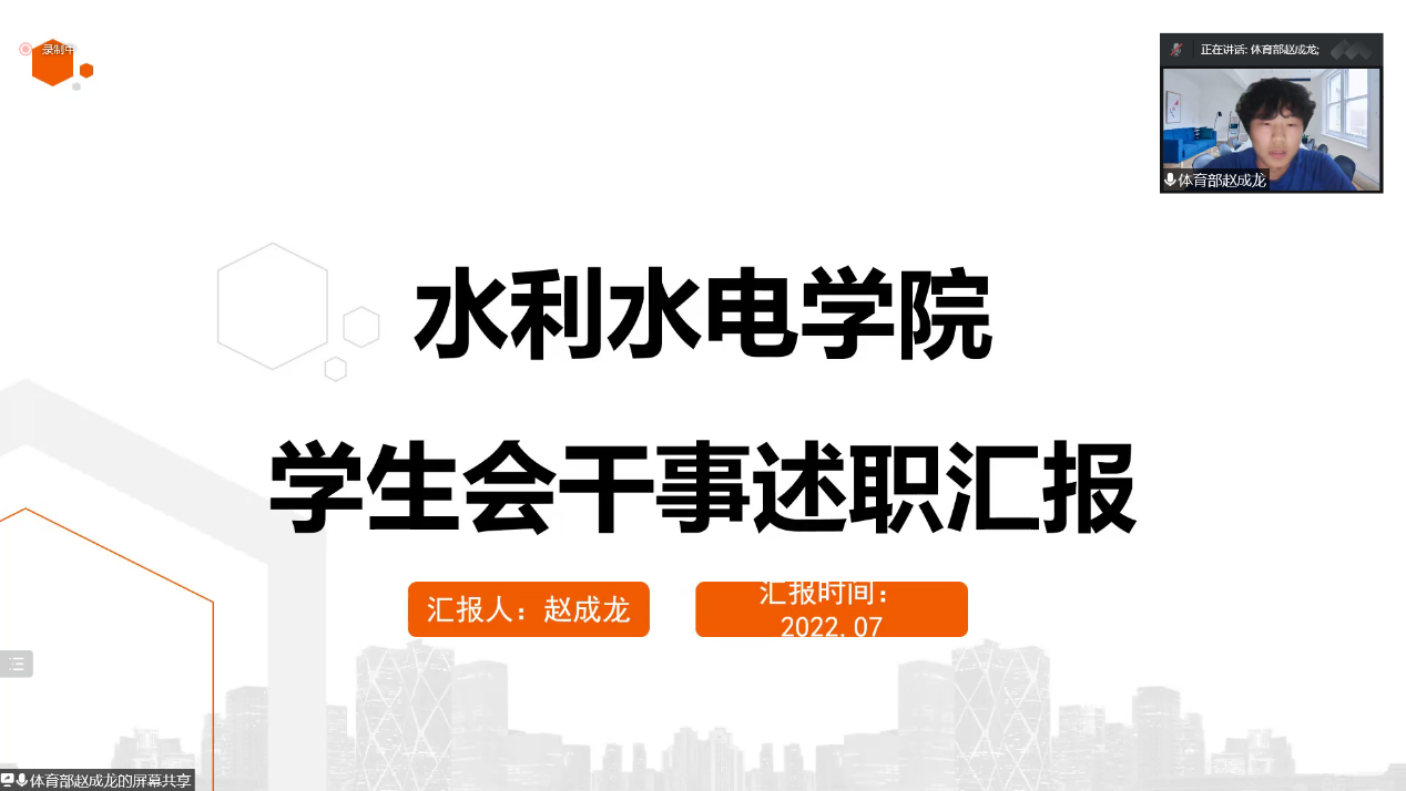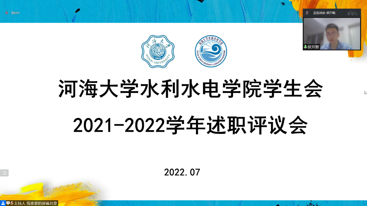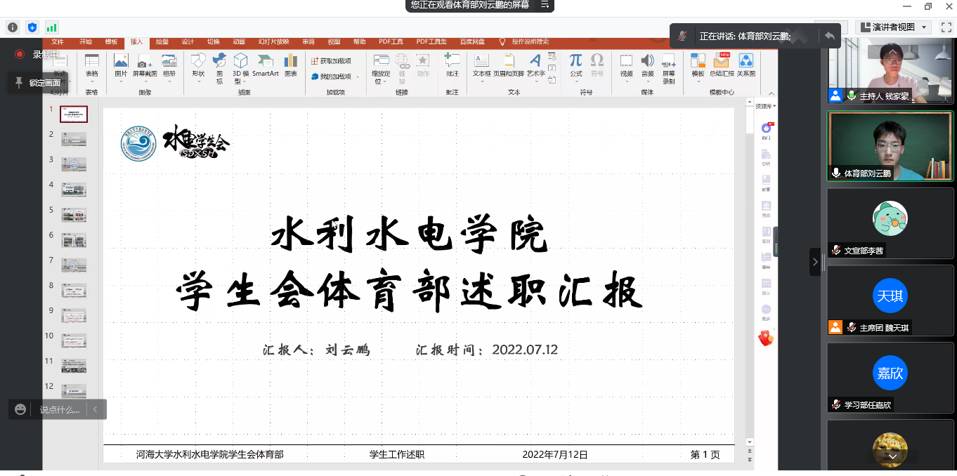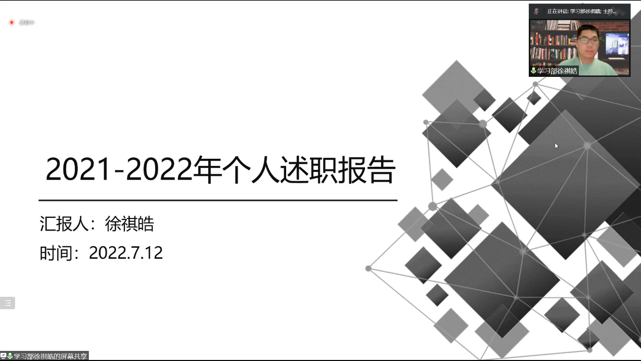 7月12日19:00,我院学生会2021-2022学年第二学期述职评议大会借助网络平台线上举行。会议由皇冠赌场 学生会主席团成员钱家豪同学主持,皇冠赌场 2020级本科生辅导员梁培德老师、2021级本科生辅导员侯开智老师、学生会全体成员以及各班班长参与了本次评议。