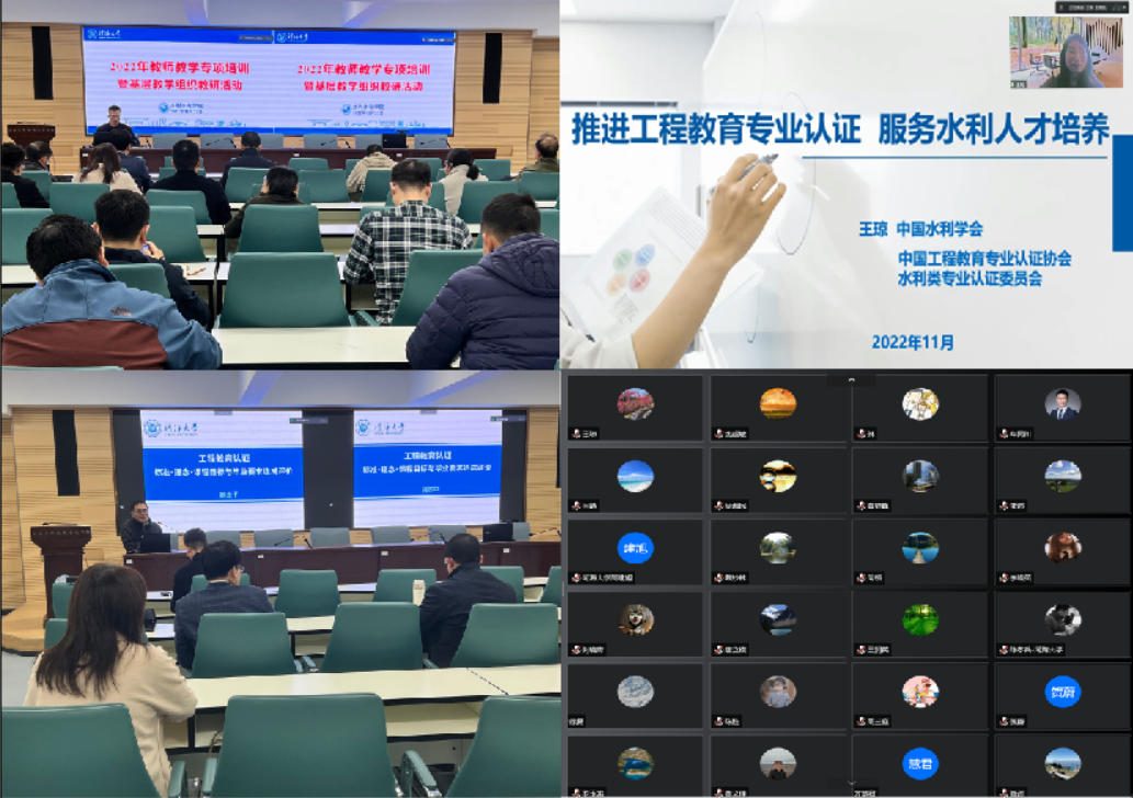 11月23日,皇冠赌场 组织开展了教师教学专项培训暨基层教学组织教研活动,中国工程教育专业认证协会水利类专业认证委员会王琼副秘书长,中国工程教育认证专家、河海大学顾圣平教授受邀作专题报告。皇冠赌场 皇冠赌场 工程系办、智慧水利系办、专业办、部分课程负责人、青年教师代表、教学秘书等参加了研讨会,会议由王建副院长主持。