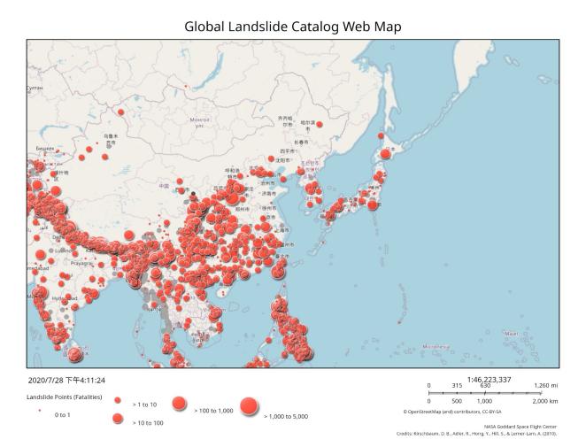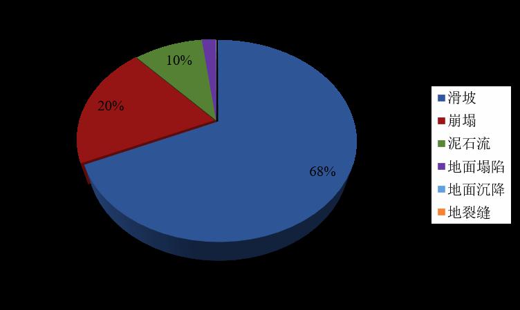 图1 我国大陆地区滑坡事件分布 图2 我国地质灾害类型构成